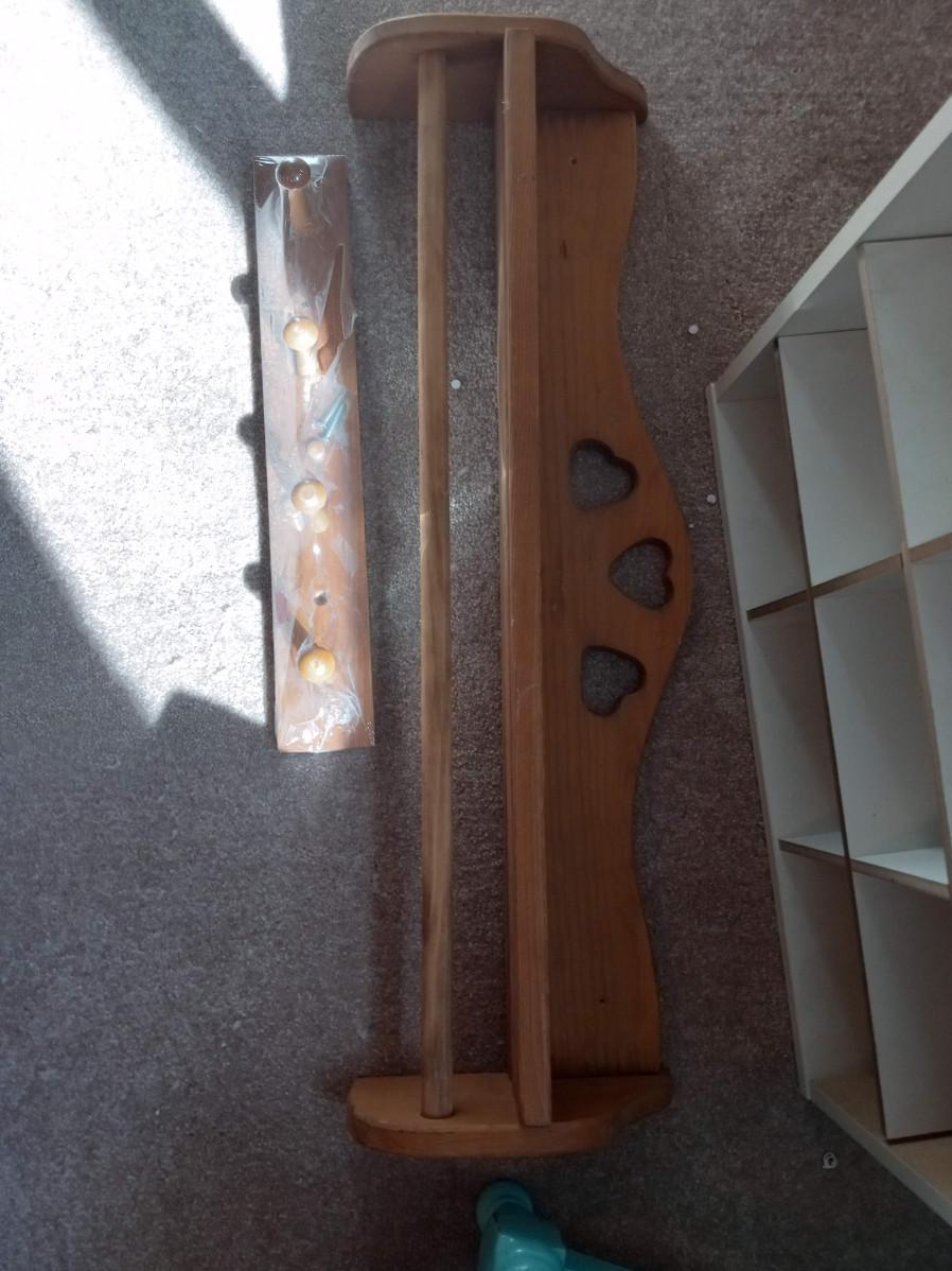 LOT 353  ANTIQUE CHAIR, SHOE RACK AND 2 WALL HUNG WOODEN ITEMS