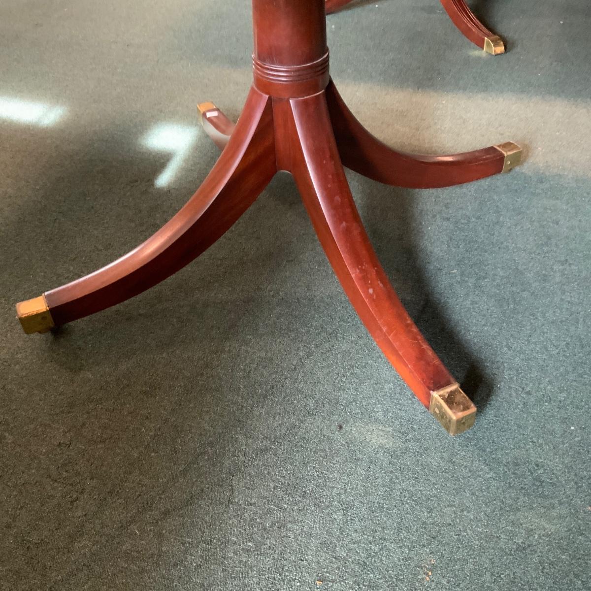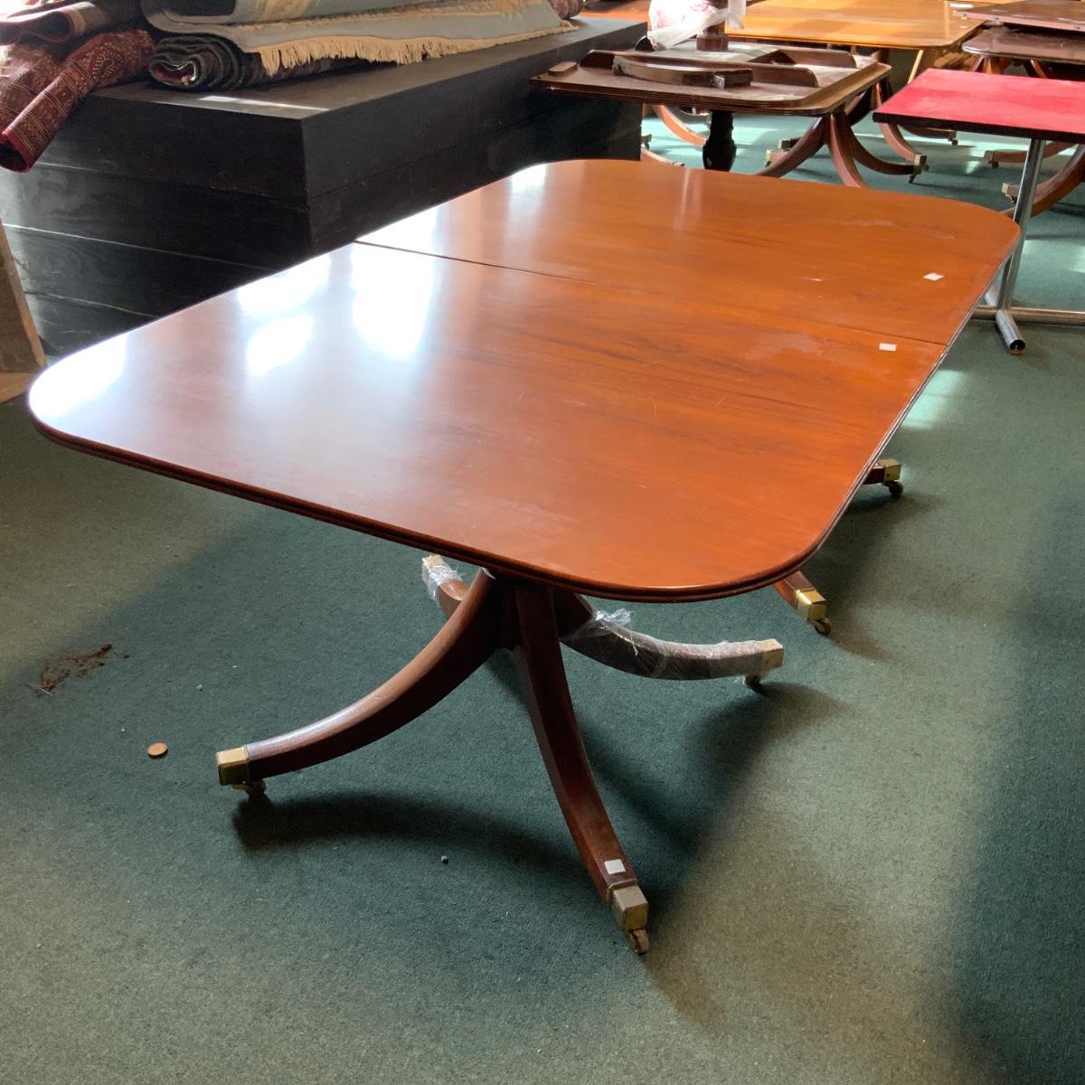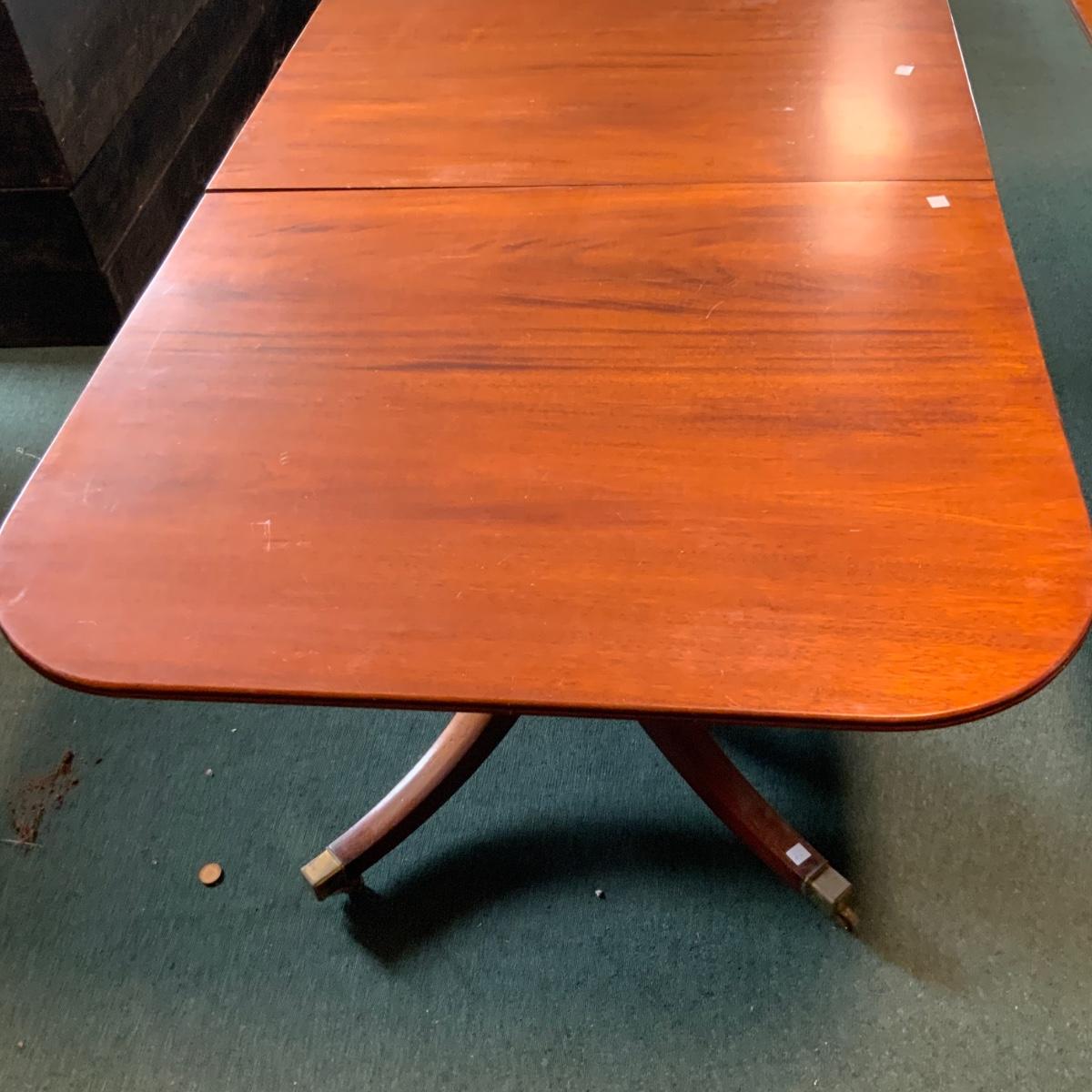 Double Pedestal Table, no leaf. //::\\ Please see photos for details and condition. No attempt has been made to hide any imperfections. All items listed in this auction are warehouse items, and need to be cleaned. A majority of the items need restoration as well. All items are sold AS IS and WITHOUT GUARANTEE. If you are uncertain about an item, DO NOT BID. Due to the nature of this online auction in-person inspection is HIGHLY recommended. All Sales are FINAL. Pick Up Times are FIRM. Please confirm with your own schedule that you can pick up in the scheduled times listed in the Terms and Conditions. Any questions please message the auctioneer. DO NOT Contact The Harp Gallery.