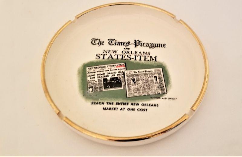 Vintage transferware Times Picayune/States Advocate Ashtray - a blast from the past. Measures 6.75" across. Good vintage condition.