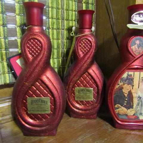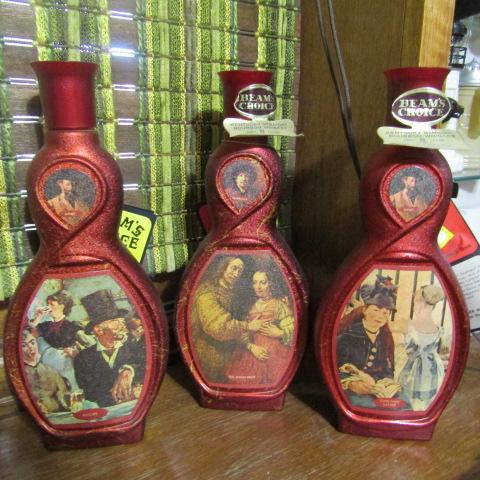 LOT 354  THREE RED DECANTERS OF FAMOUS PAINTINGS