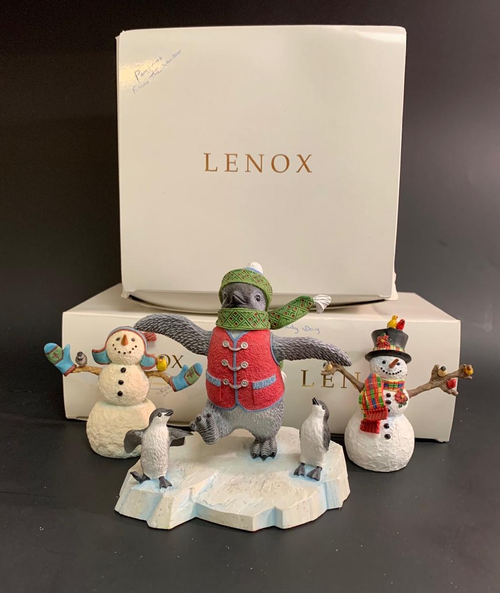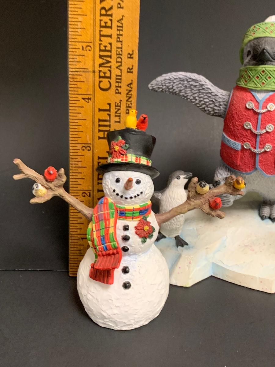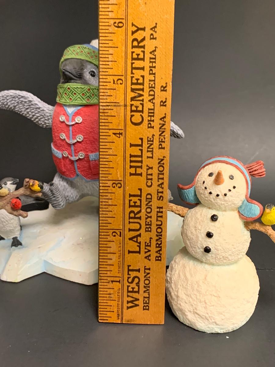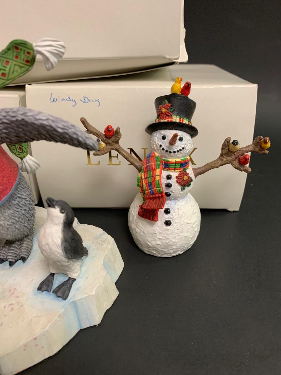 Beautiful Lenox sculptures designed by Artist Lynn Bywaters for the Lenox American By Design Snowman Collection. Made of resin and painted by hand.