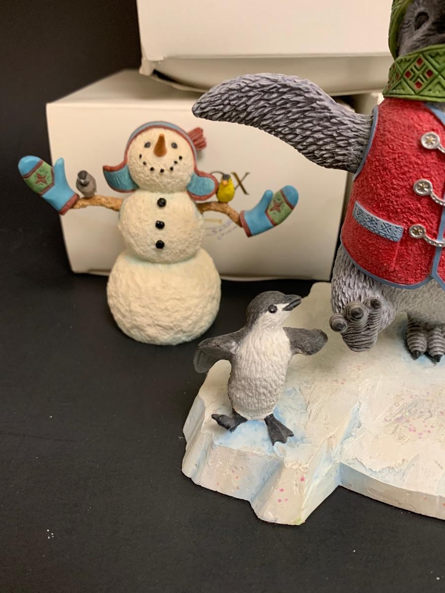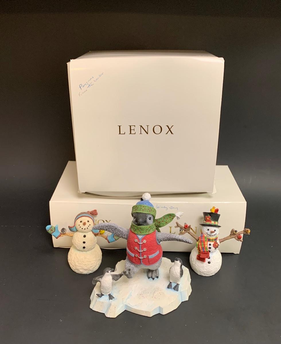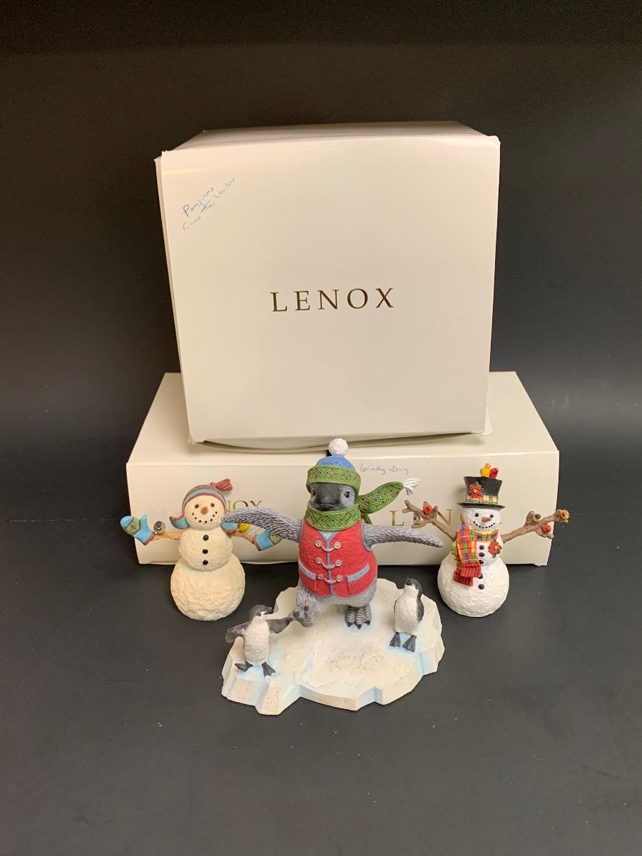 Beautiful Lenox sculptures designed by Artist Lynn Bywaters for the Lenox American By Design Snowman Collection. Made of resin and painted by hand.