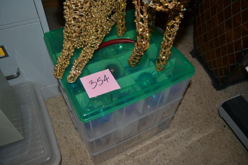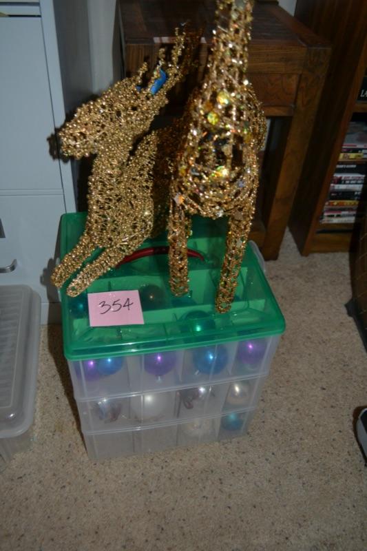 LOT 354 CHRISTMAS DECOR DEER AND ORNAMENTS