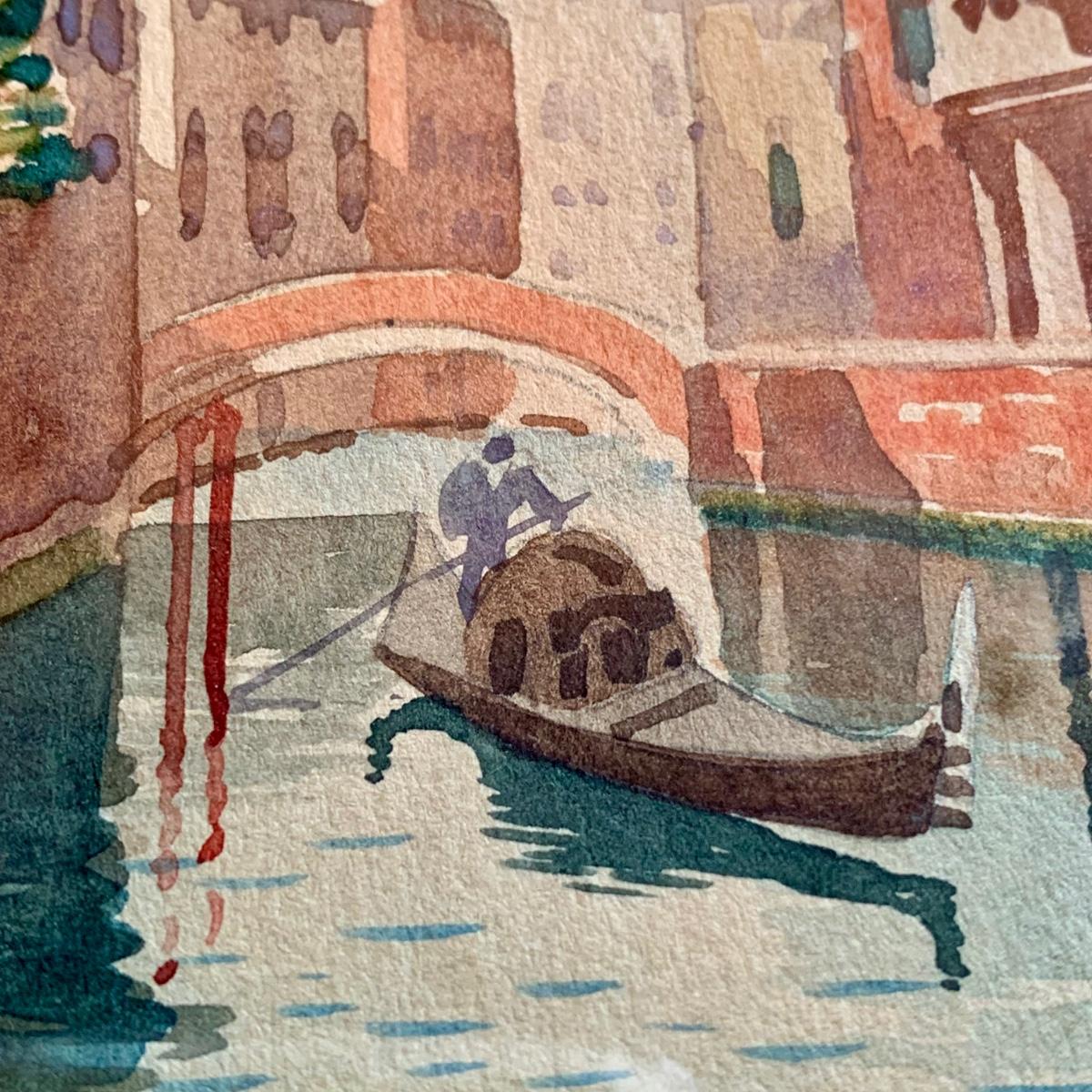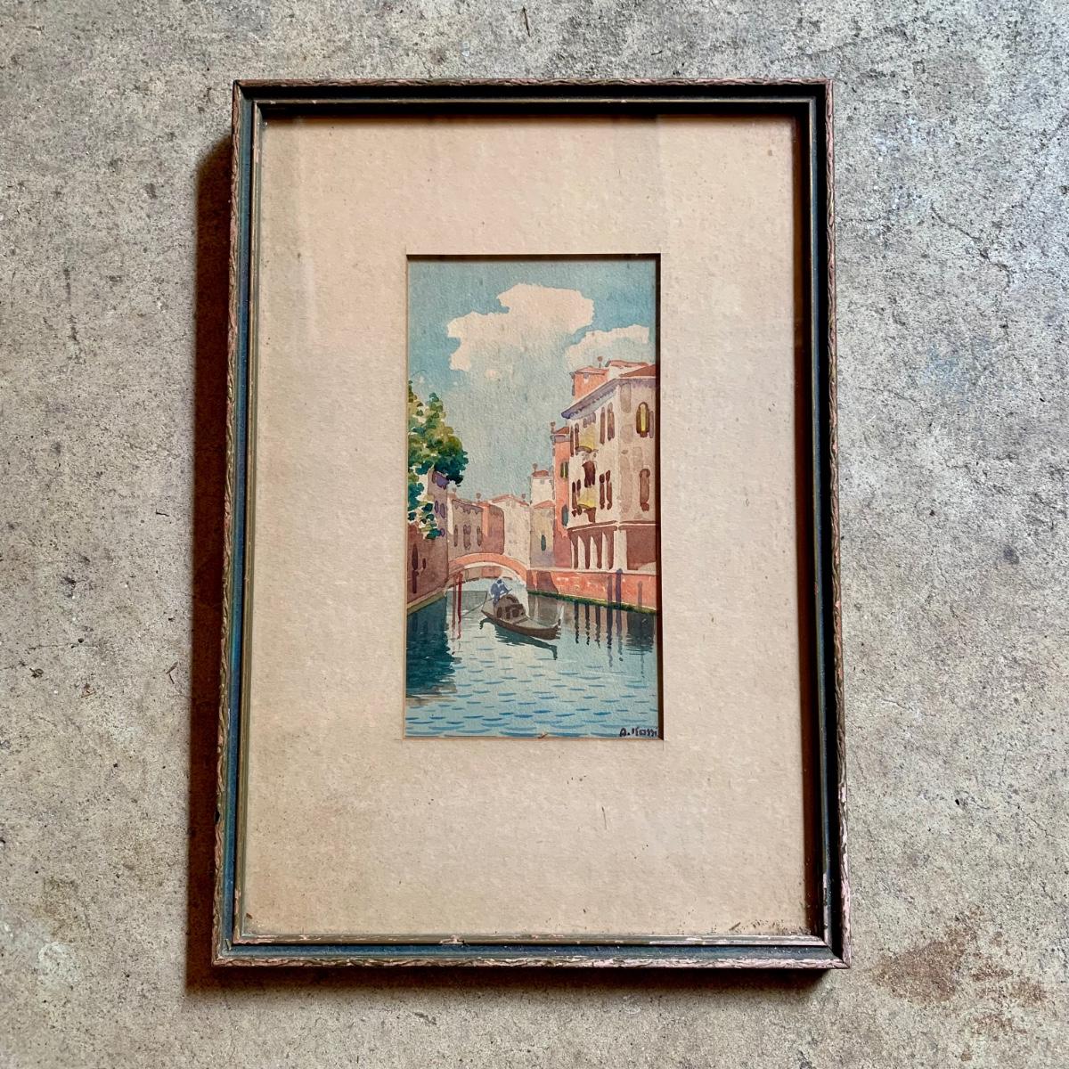 LOT 354 G: Framed & Signed Watercolor Painting: Canal in Venice