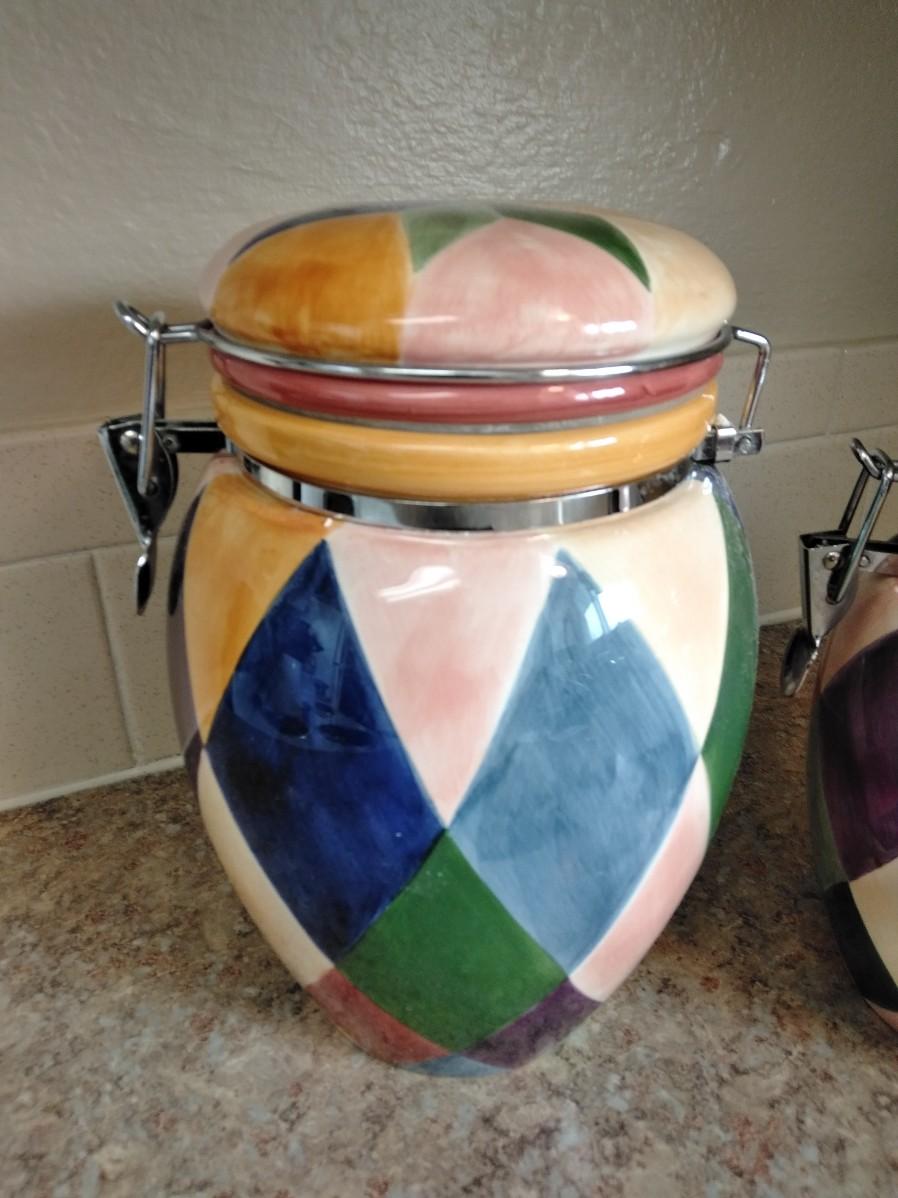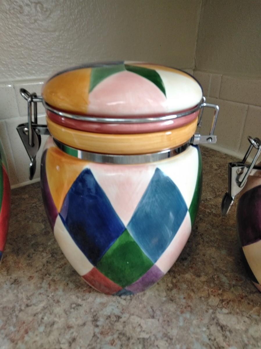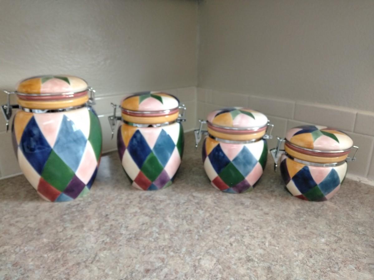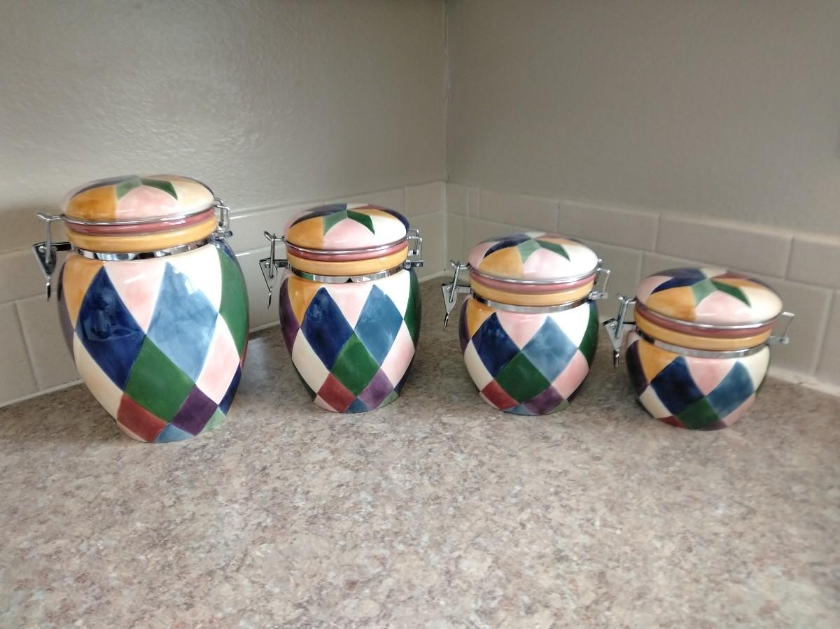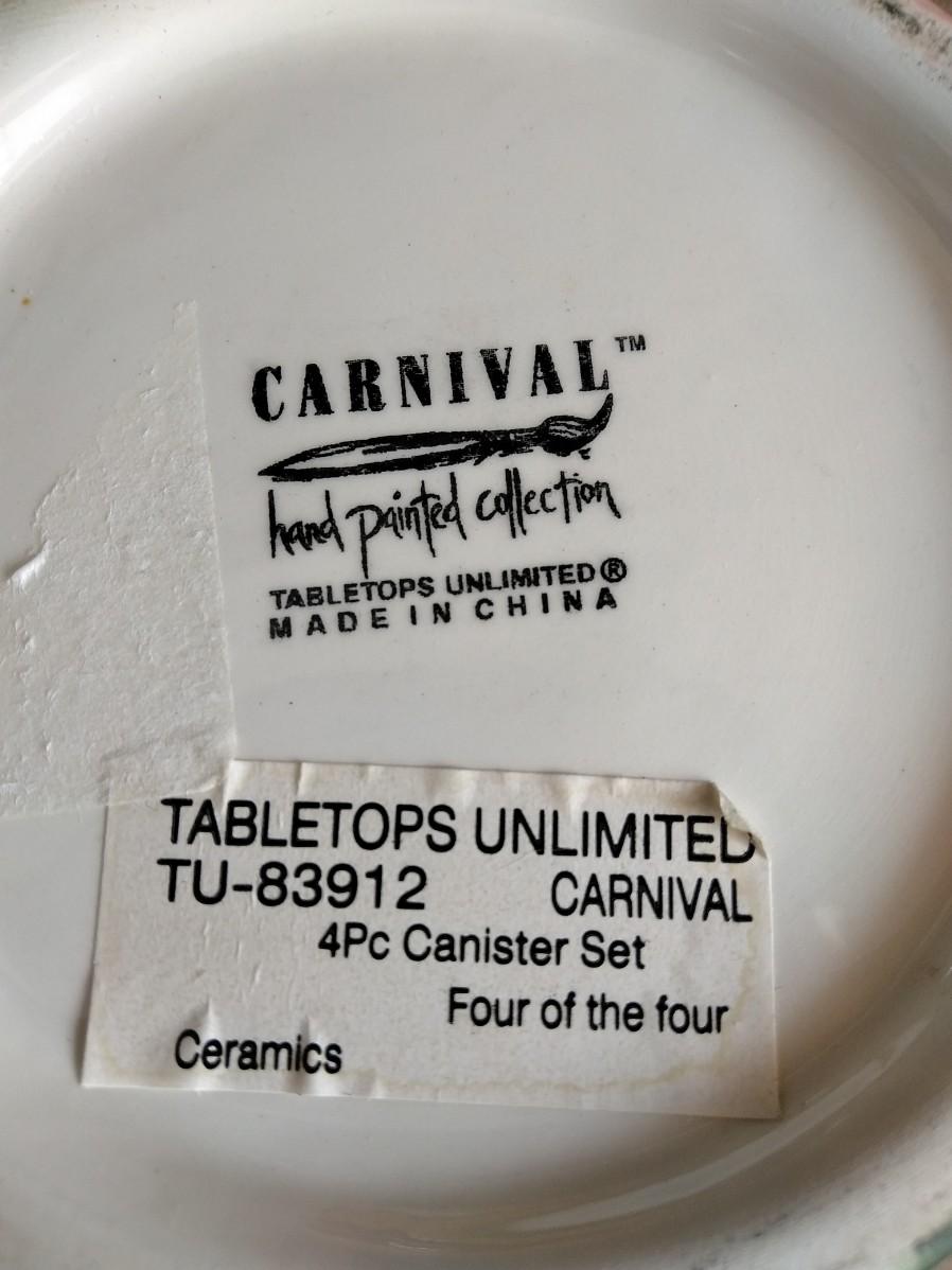 LOT 354 HAND PAINTED CARNIVAL TABLETOPS UNLIMTED CANISTER SET