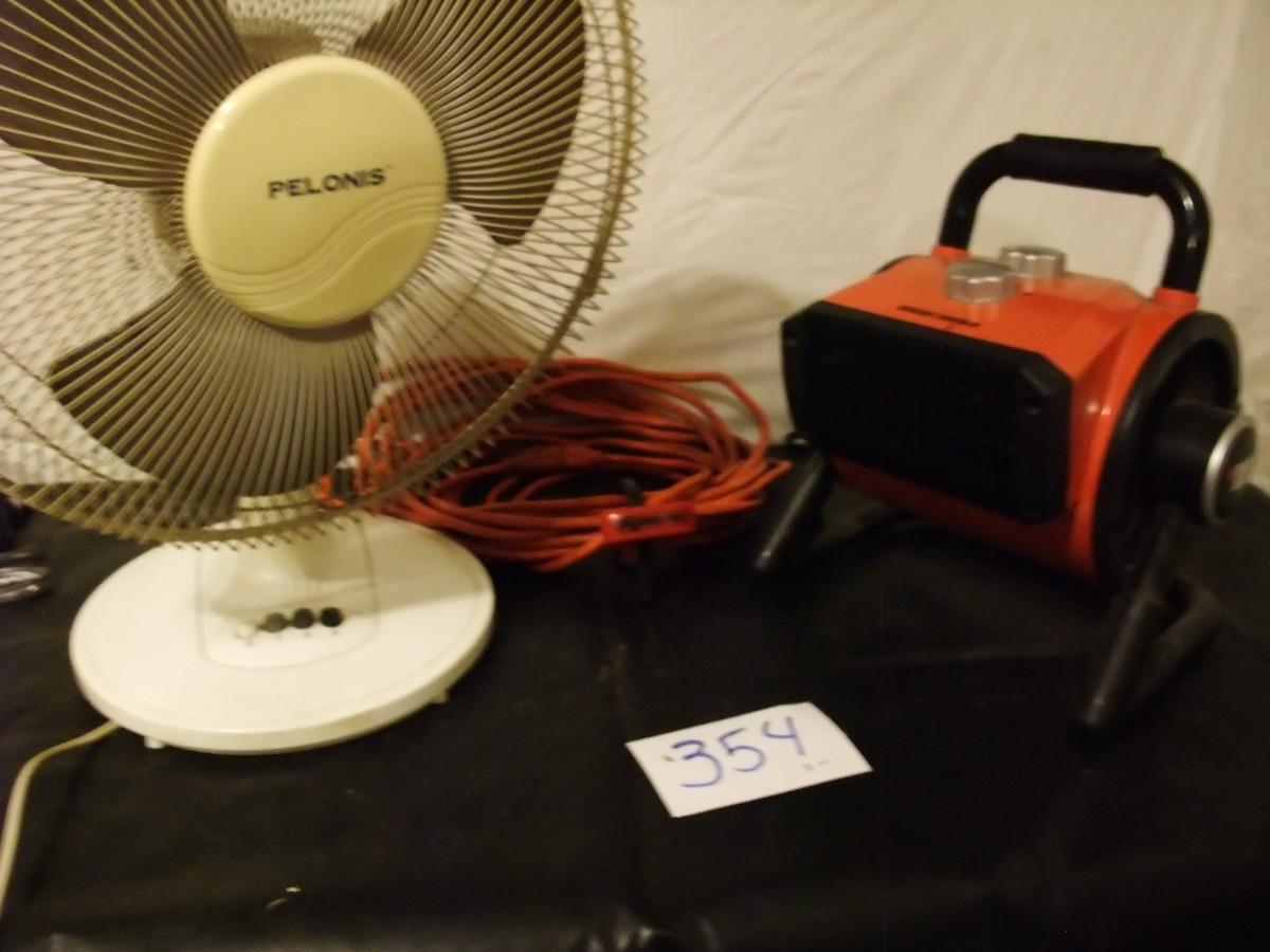 LOT 354 PELONIS DESK FAN 11'' , BLACK & DECKER SPACE HEATER, EXT CORD