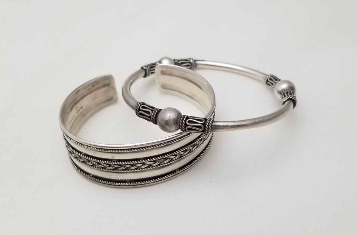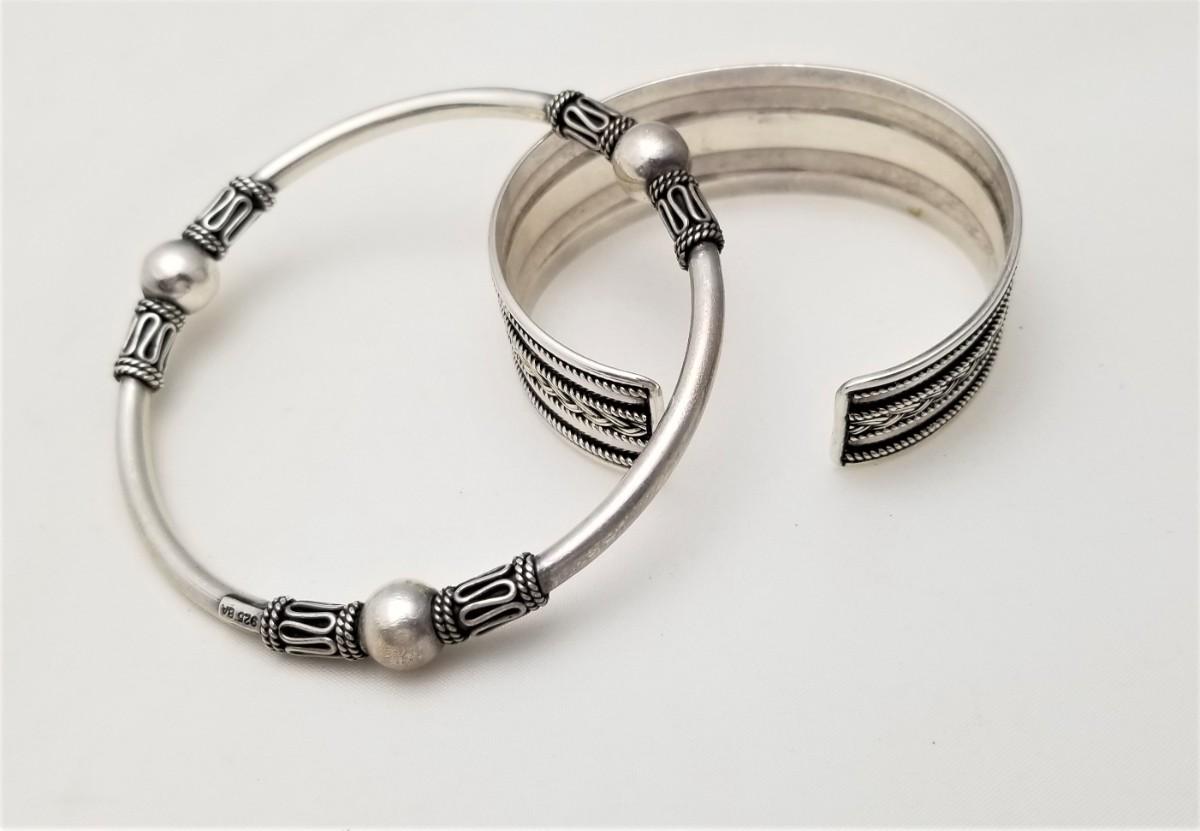 Two contemporary Sterling Silver (marked) bracelets - one a cuff, the other a bangle. Gently worn.
