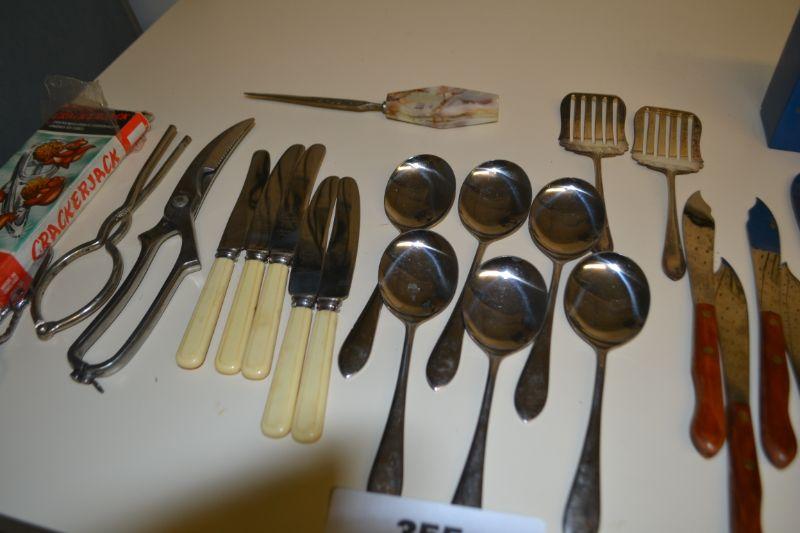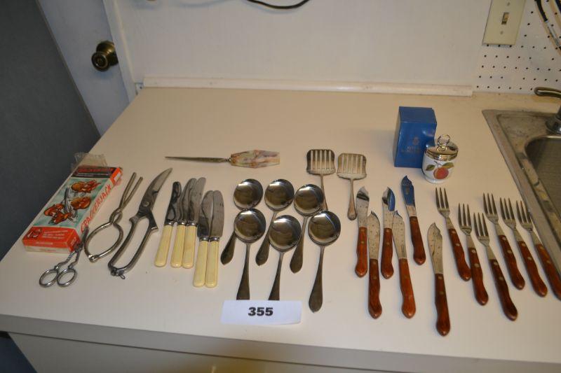 LOT 355 KNIVES AND SPOONS