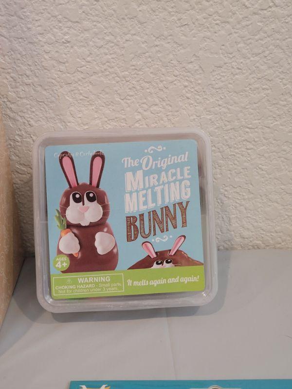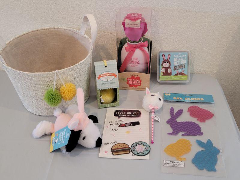 Lot 355: New Hallmark Easter Bucket with a Snoopy Bunny,  Bloom Again and Again Flower, Miracle Melting Bunny, Chirping Chicks and Stick On Patches