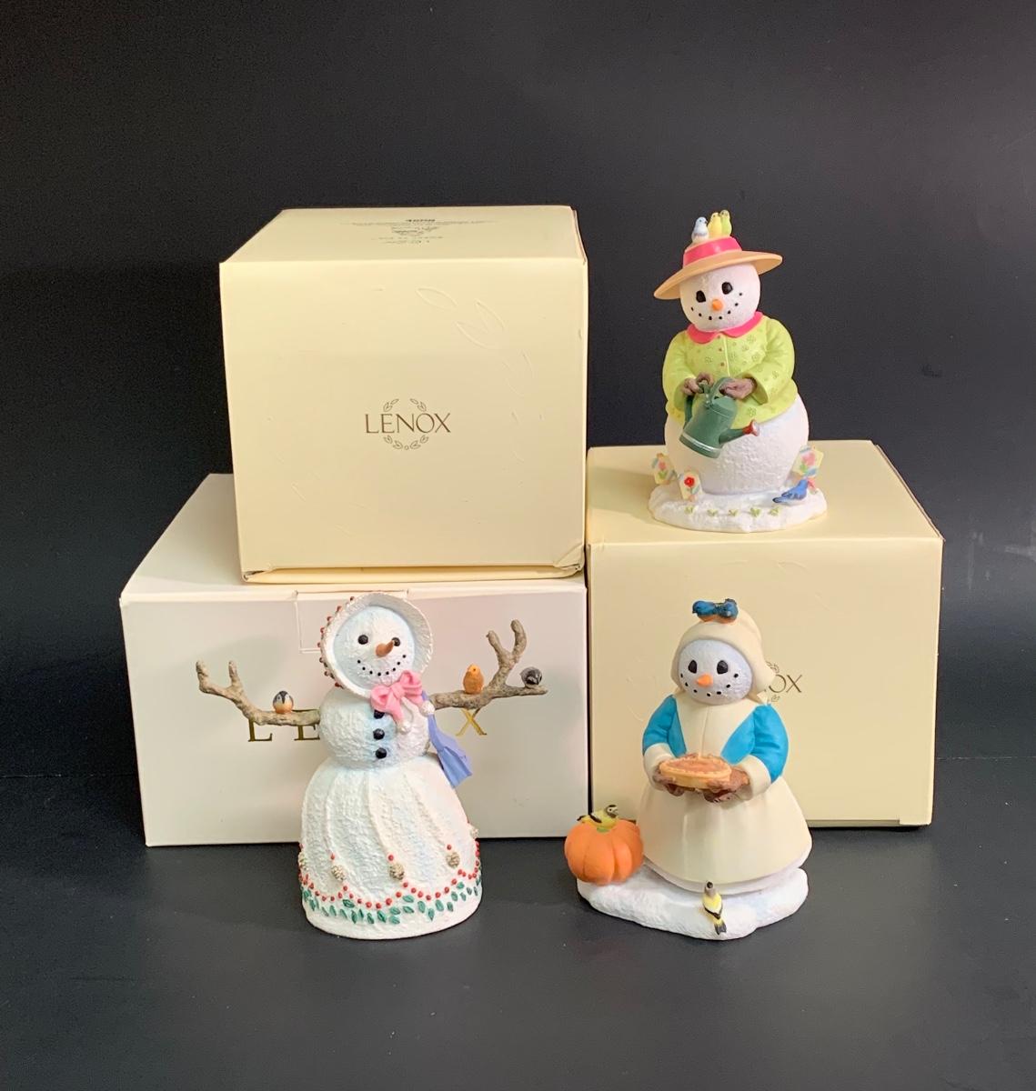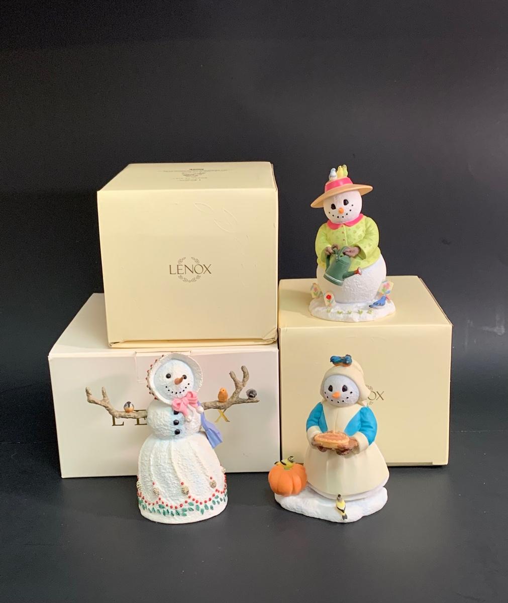 Beautiful Lenox sculptures designed by Artist Lynn Bywaters for the Lenox American By Design Snowman Collection. Made of resin, painted by hand with Original Box.