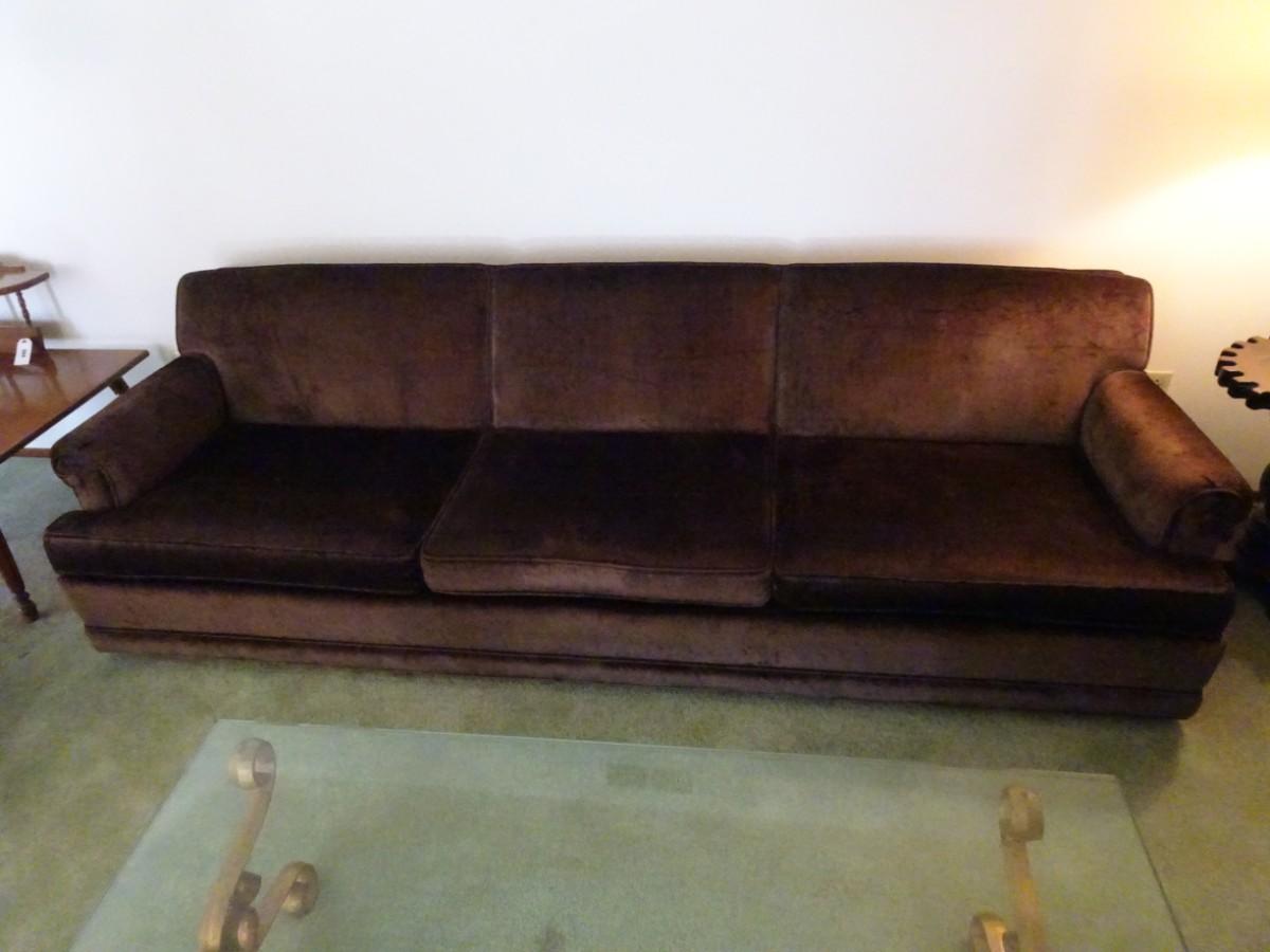 LOT 355   VINTAGE SOFA ON CASTERS IN VERY NICE CONDITION