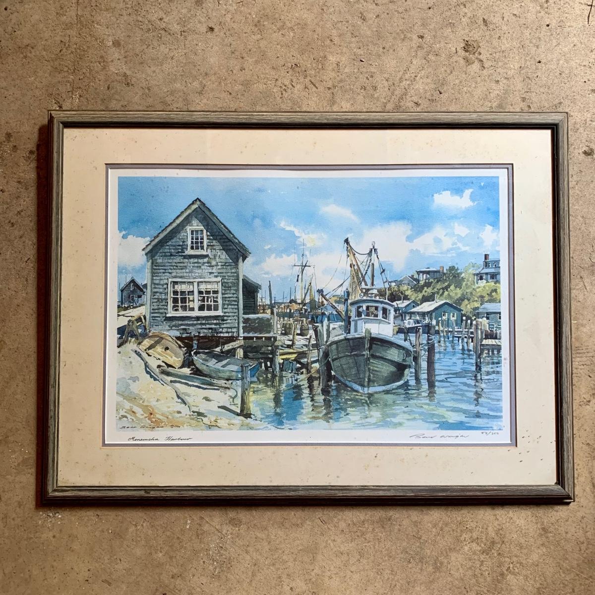 LOT 355 G: Framed, Numbered, & Signed Watercolor PRINT: "Menemsha Harbour"