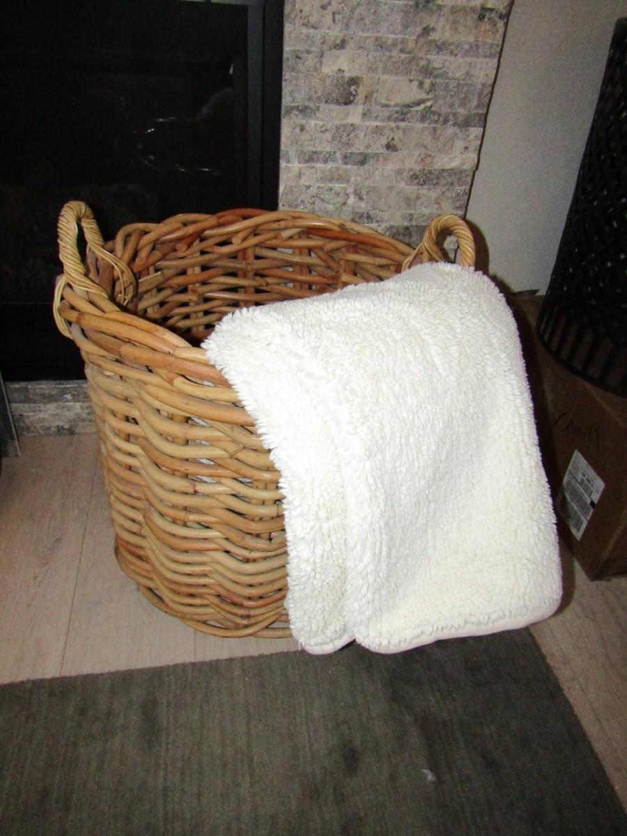 LOT 355 HUGE BLANKET BASKET AND A THROW BLANKET