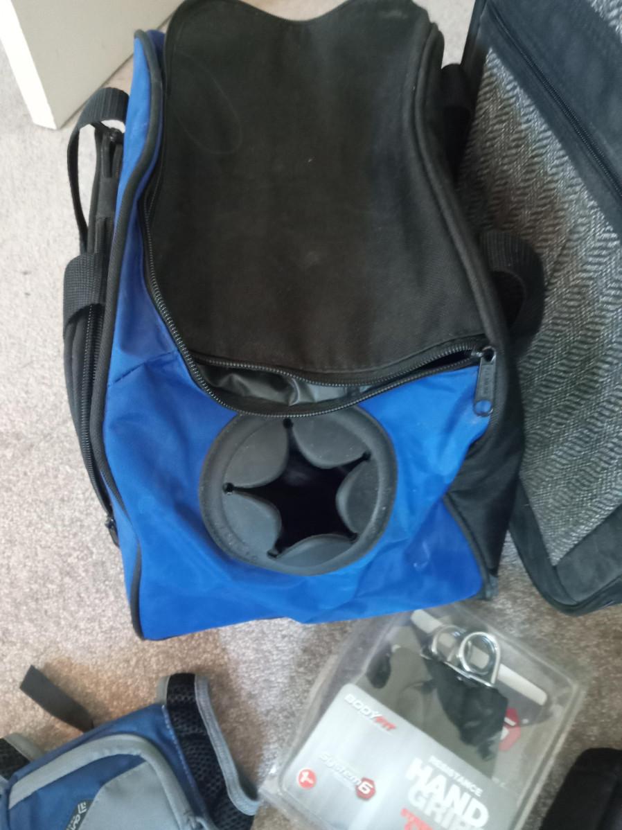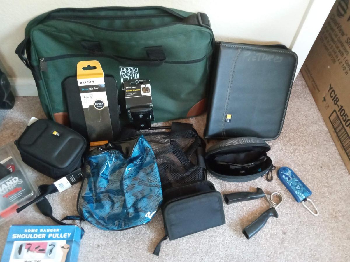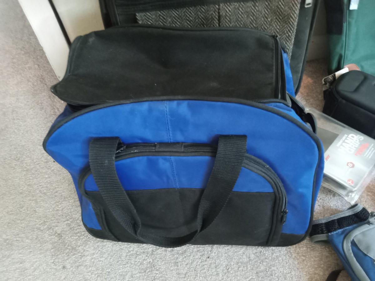 SMALL SUITCASE, TENNIS BAG AND SEVERAL OTHER CARRY CASES