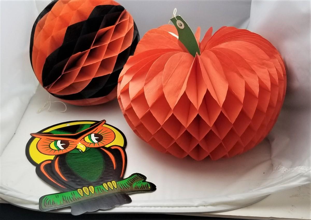 Lot #355 Vintage Halloween Lot - 2 honeycomb decorations and a Beistle Owl