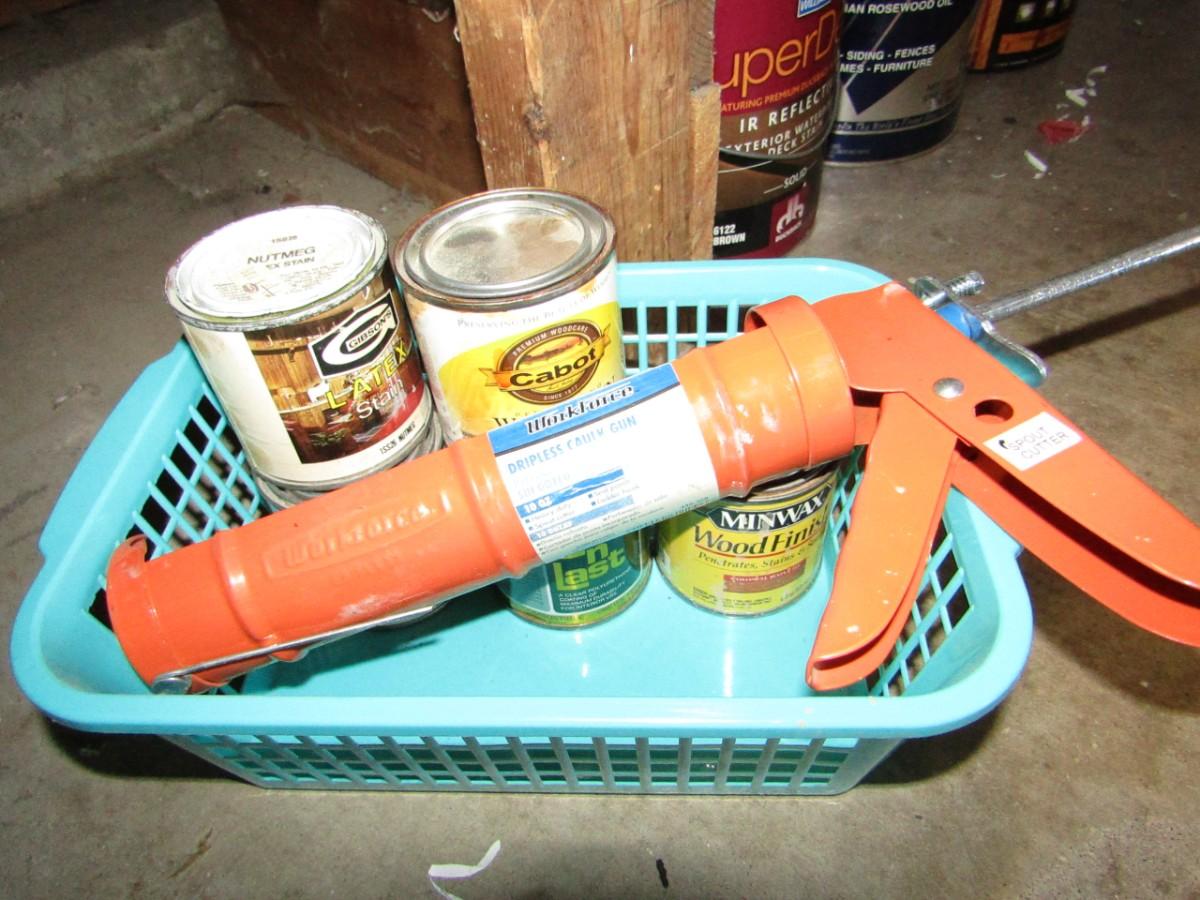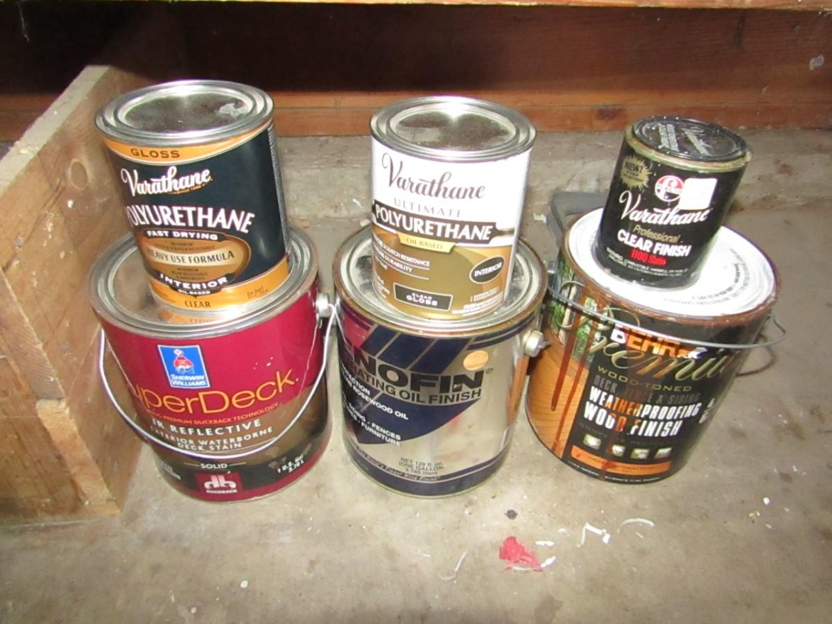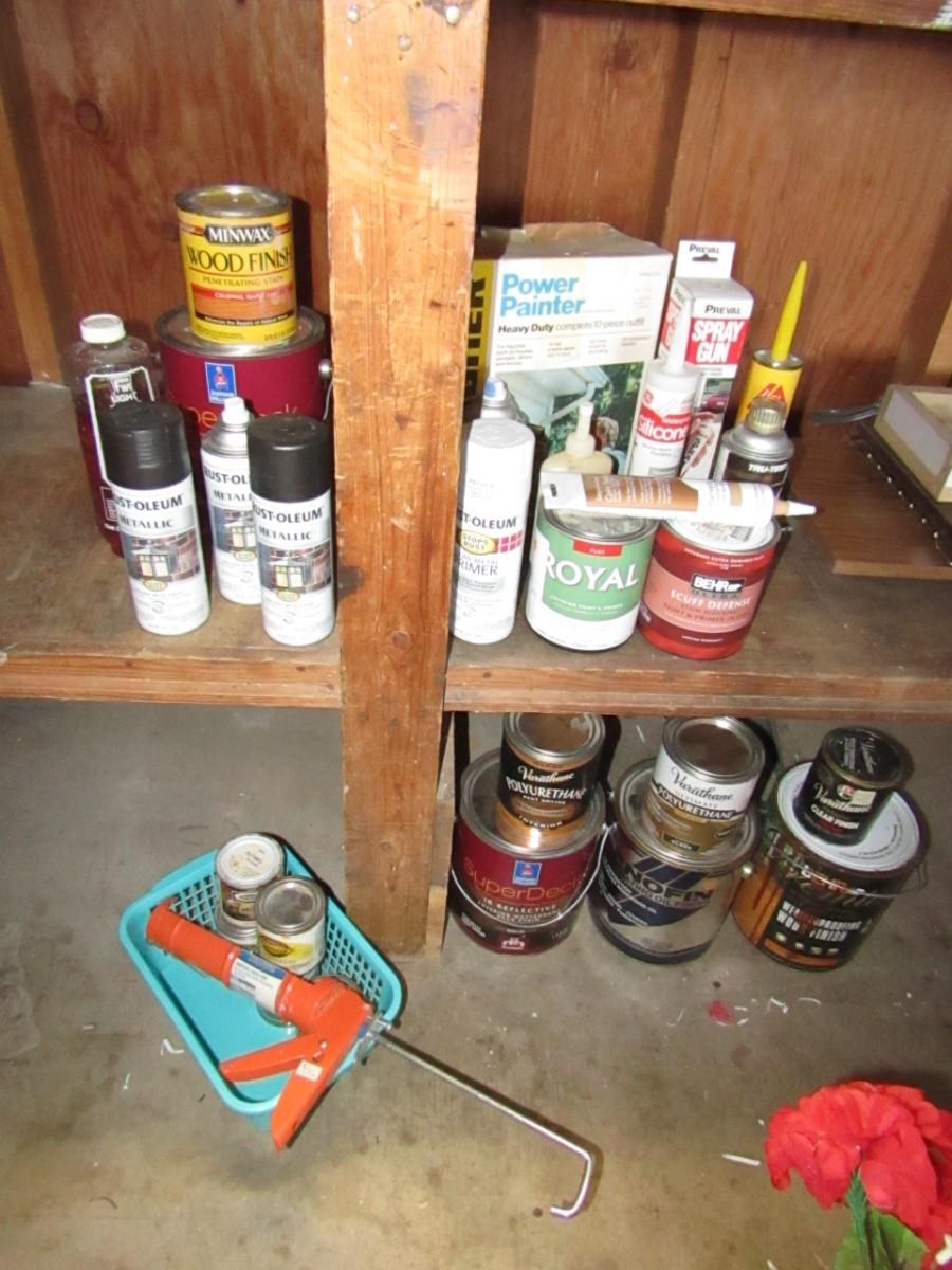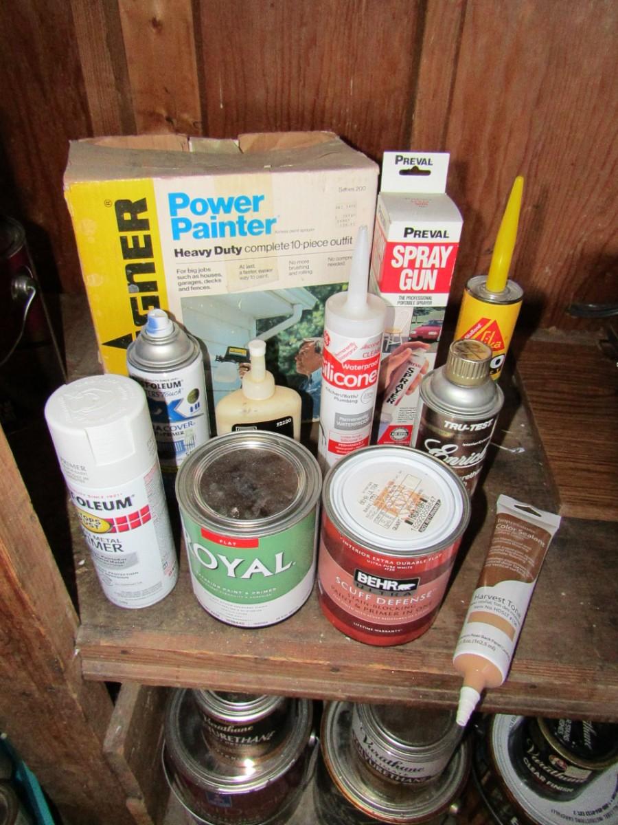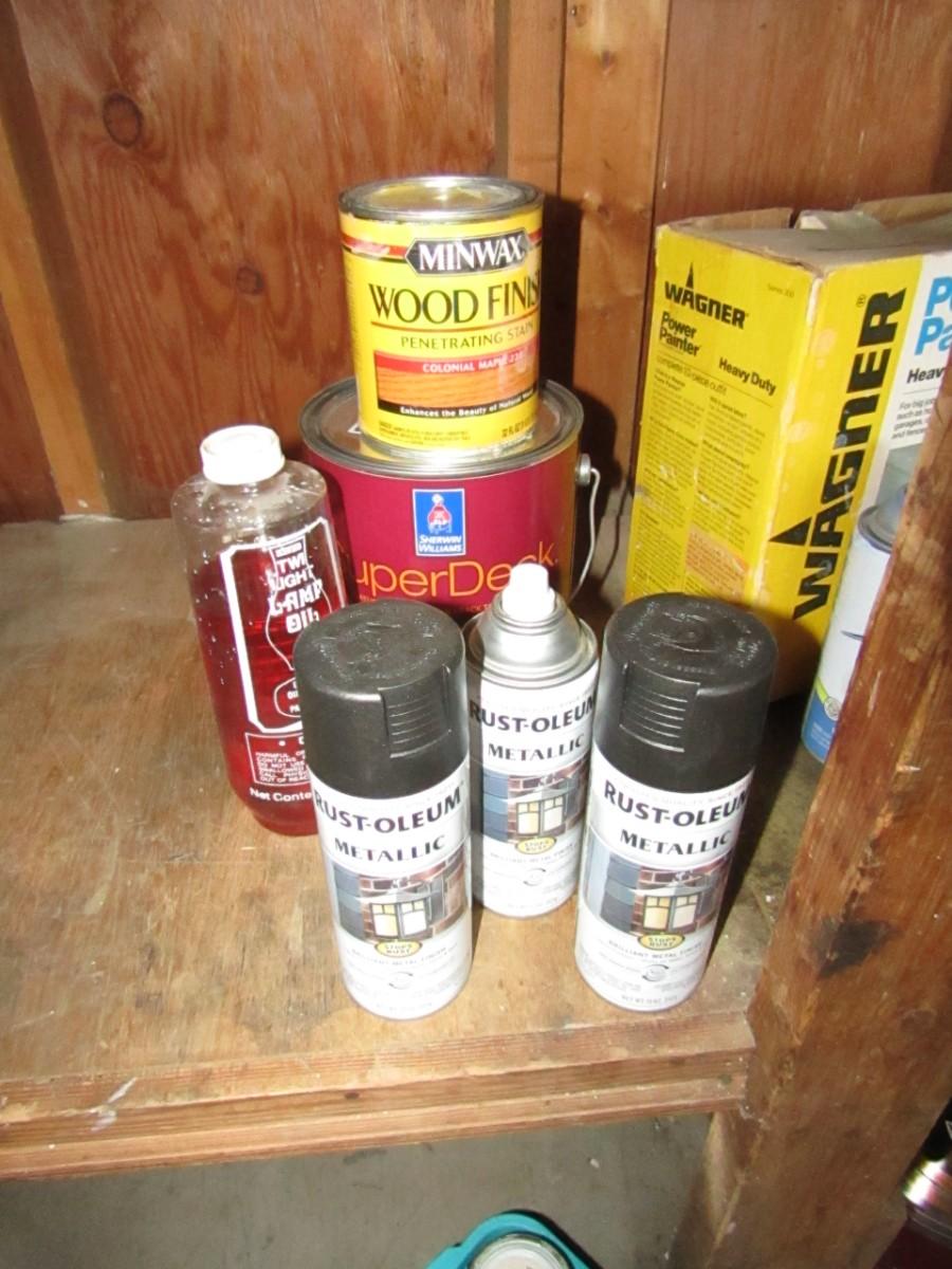 WAGNER POWER PAINTER, CANS OF PAINT AND STAIN