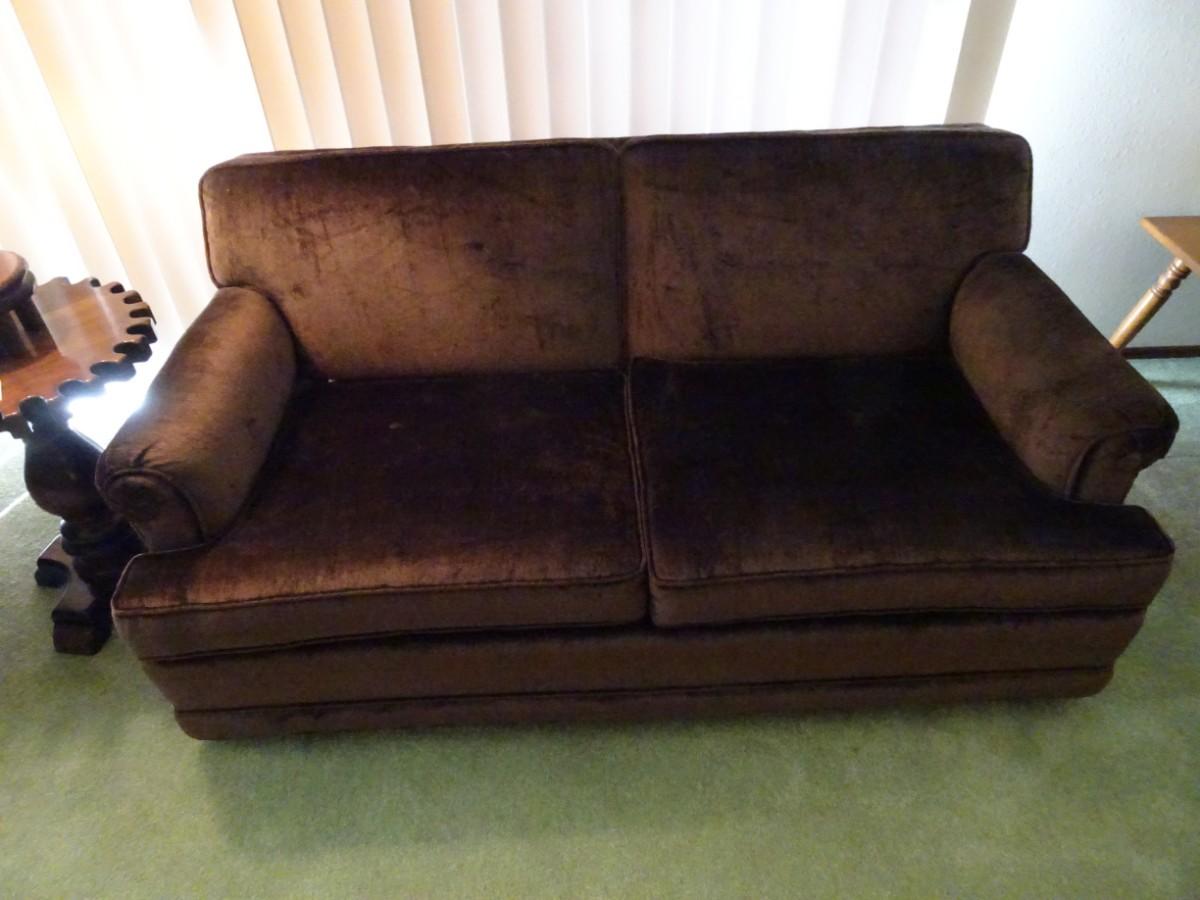 LOT 356 VINTAGE LOVE SEAT ON CASTERS IN VERY NICE CONDITION