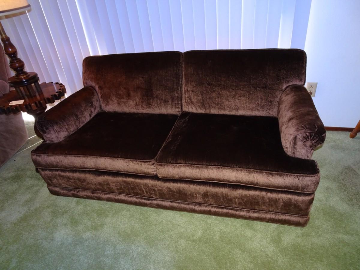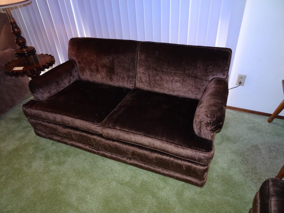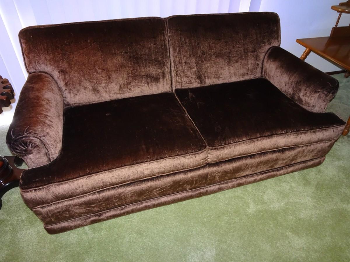 LOT 356  VINTAGE LOVE SEAT ON CASTERS IN VERY NICE CONDITION