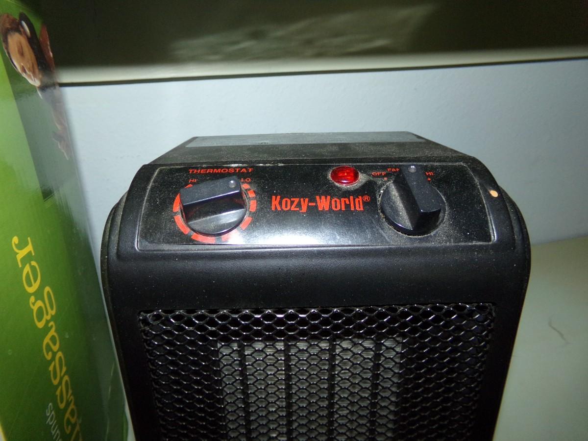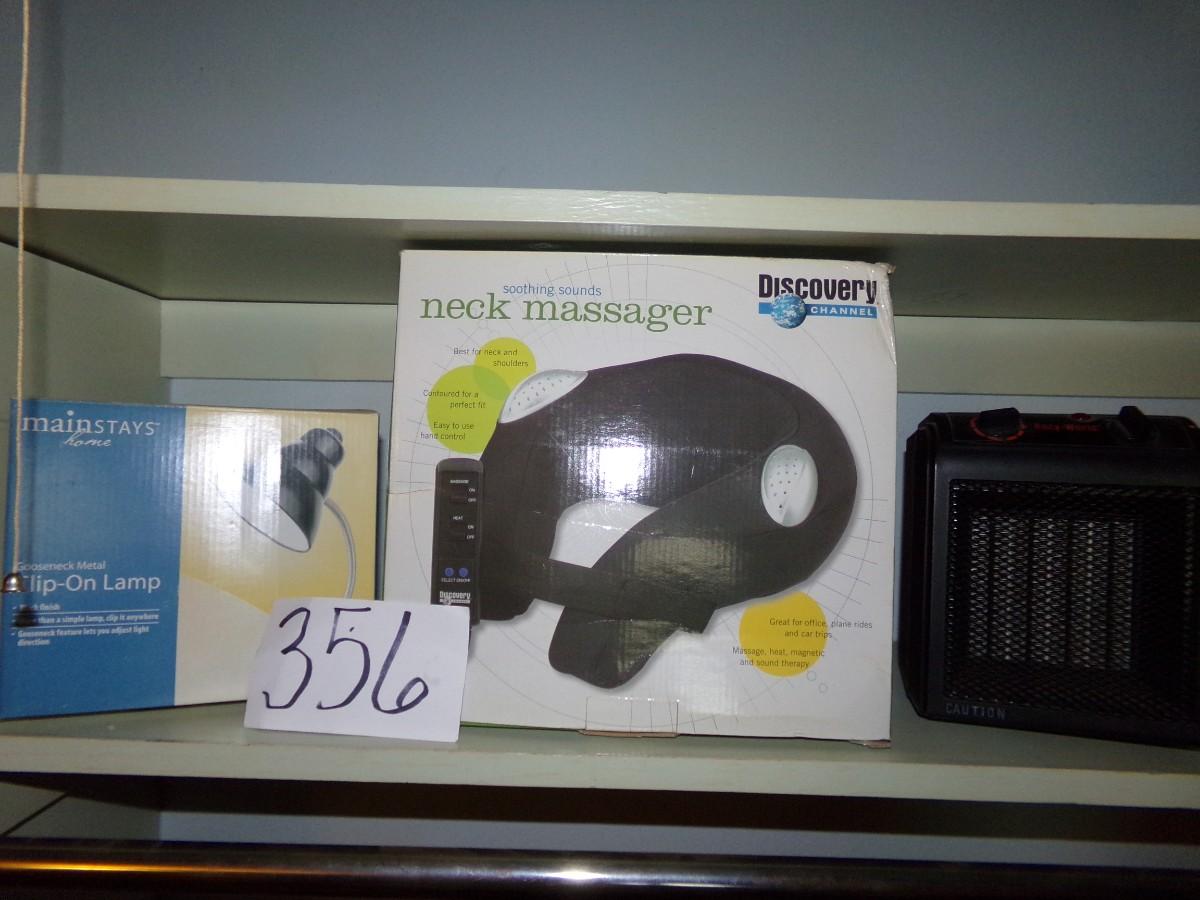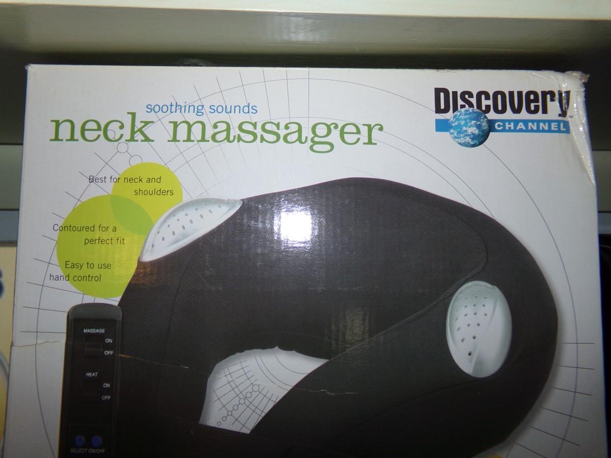 DISCOVERY CHANNEL SOOTHING SOUNDS NECK MASSAGER, CLIP-ON DESK LAMP AND A KOZY WORLD ELECTRIC HEATER.