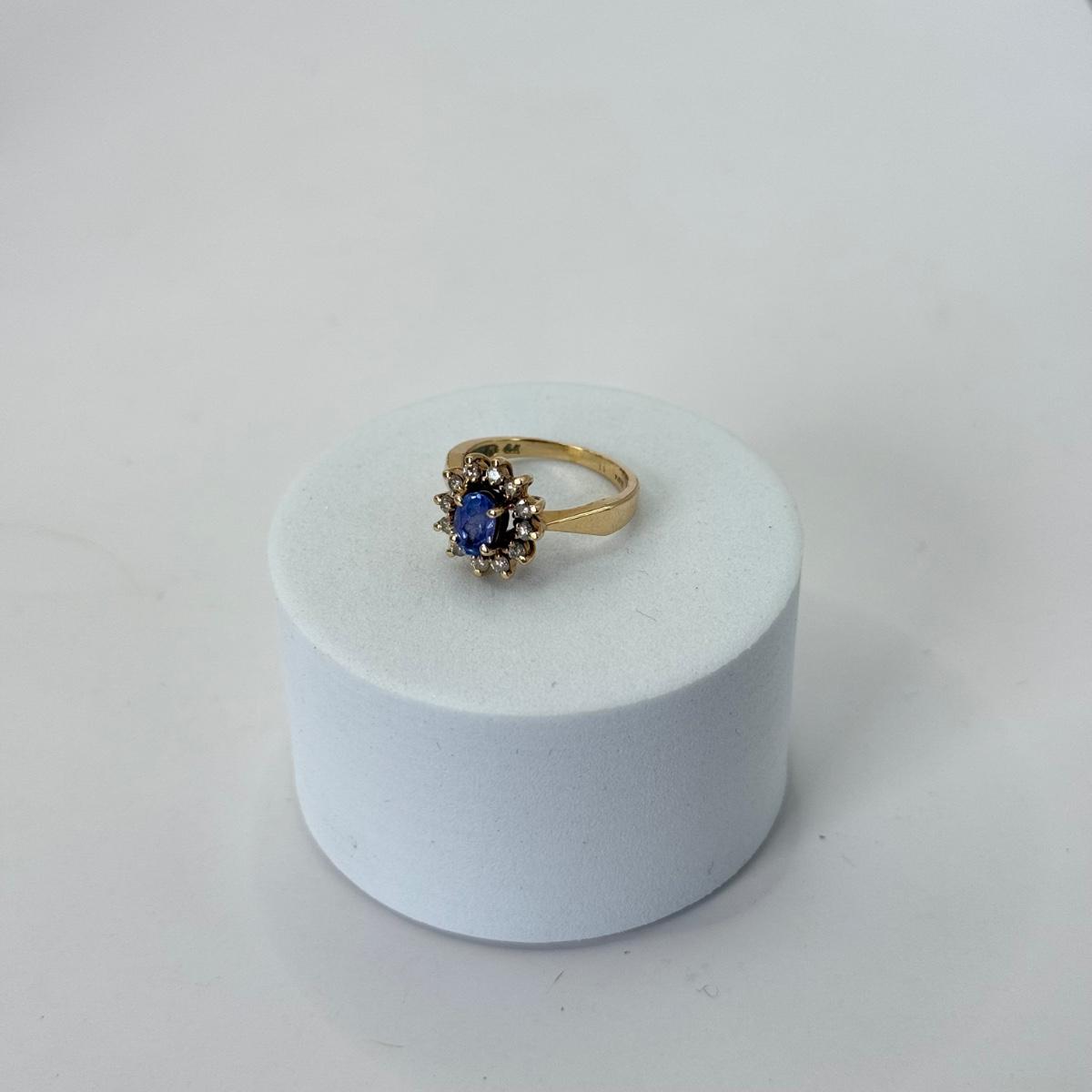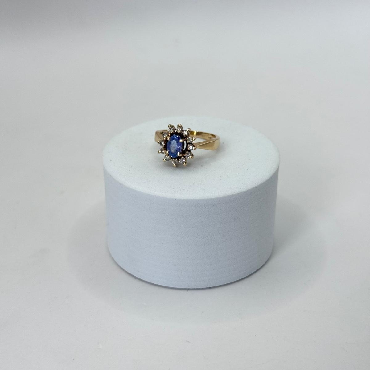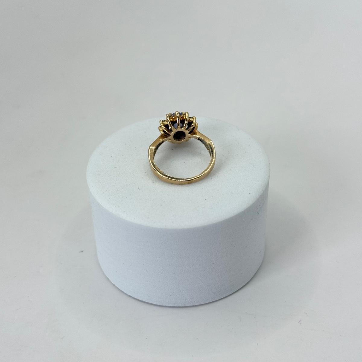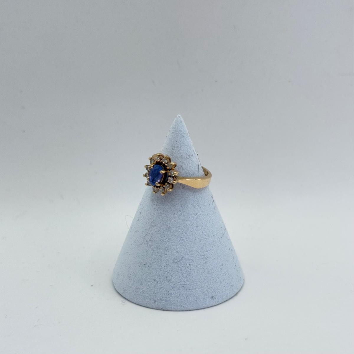 LOT 356J: Size 4.25 Vintage 14kt Gold Blue Gemstone and Diamond Ring (3.05g)