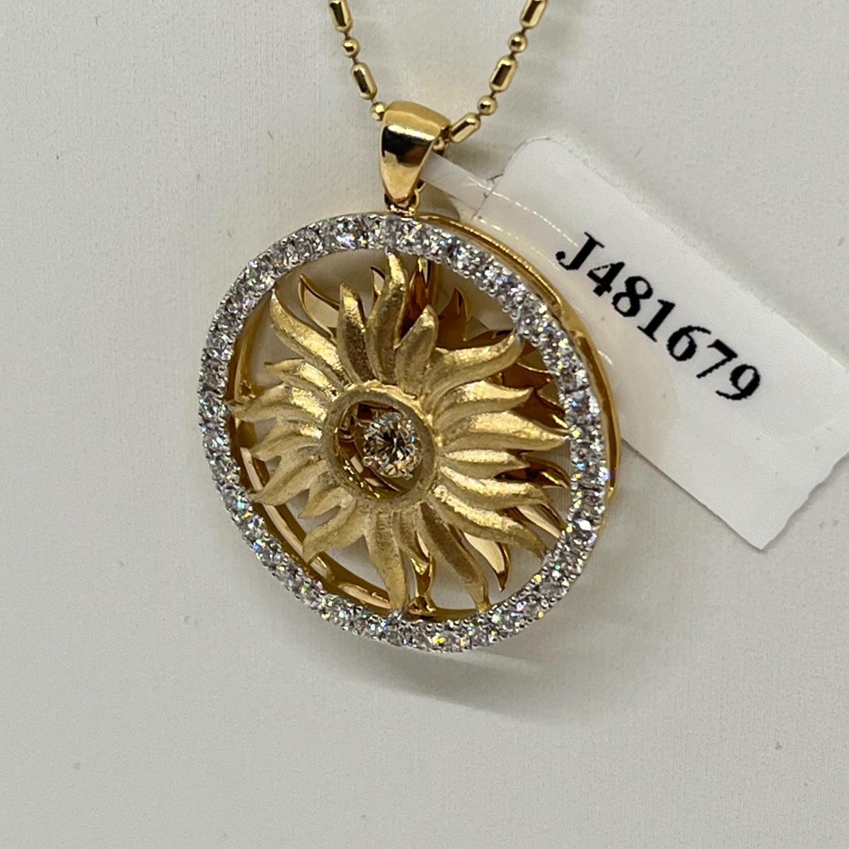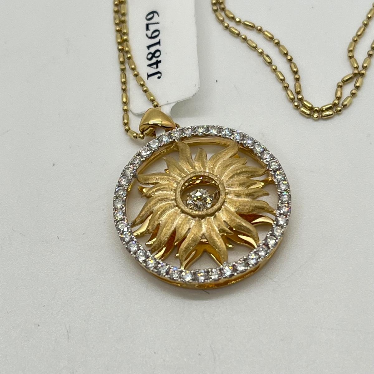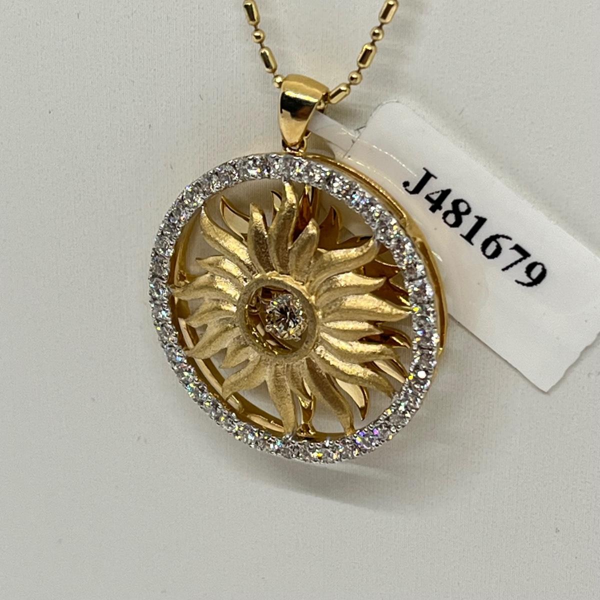 Lot 357J: Stunning New 14K Beverly Hills Diamond Sun Pendant Necklace-18"-7.2gtw-Retailed for $1,360.00