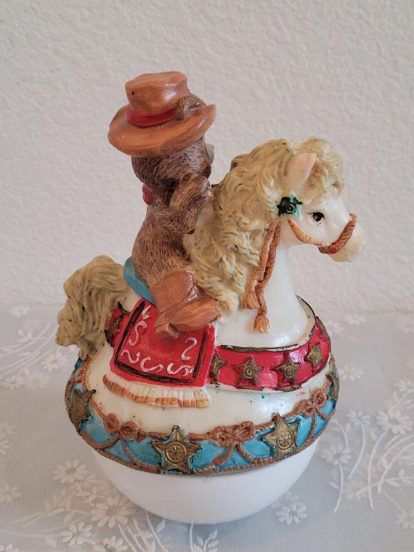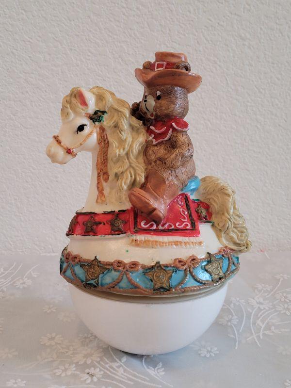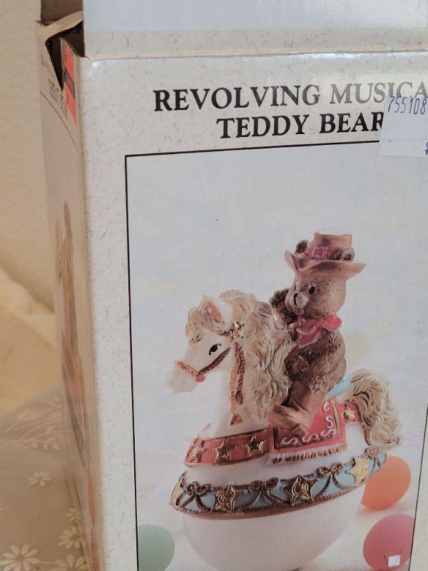 Lot 357: New in Box Musical Rotating Teddy Bear Riding Horse