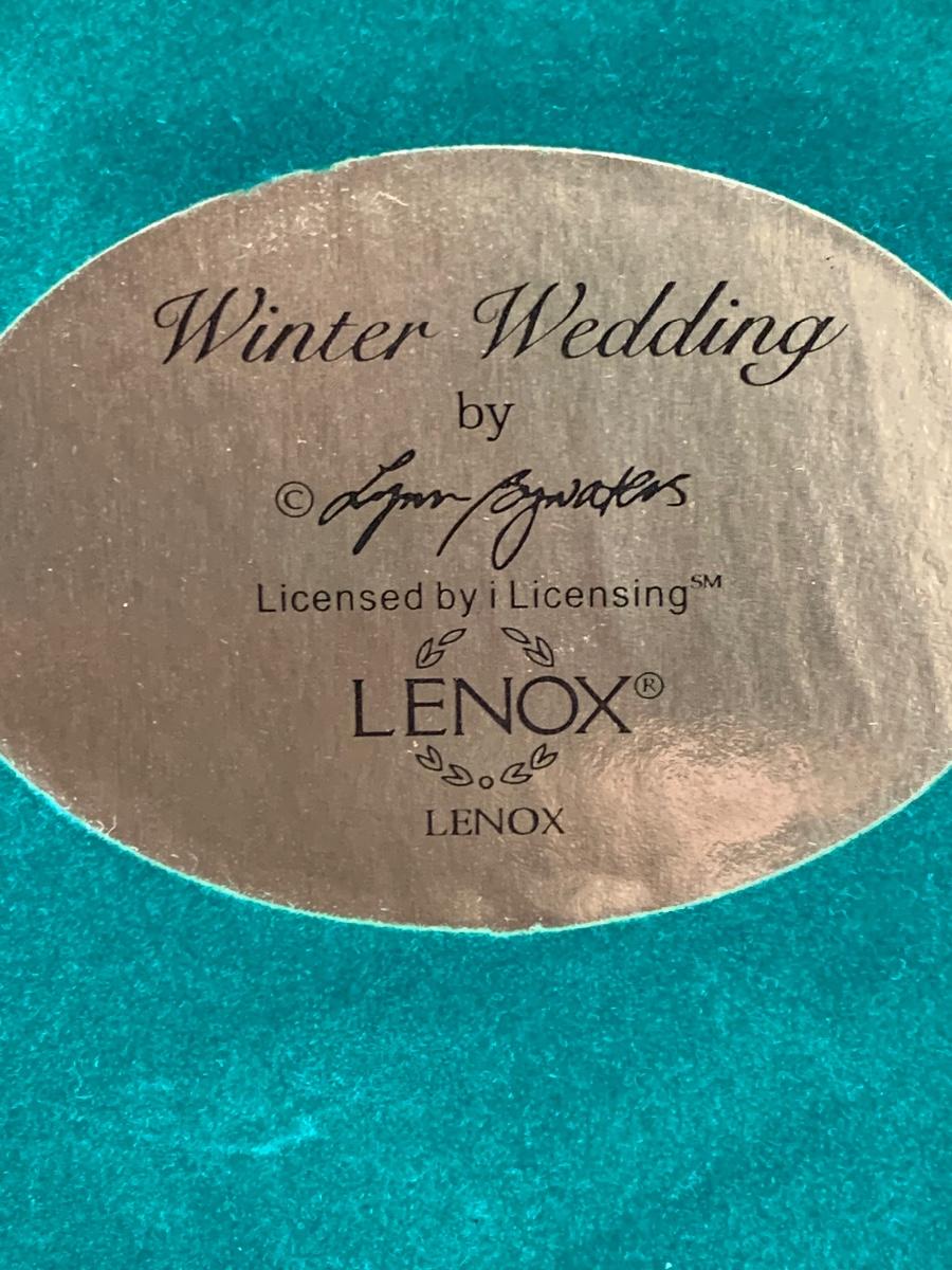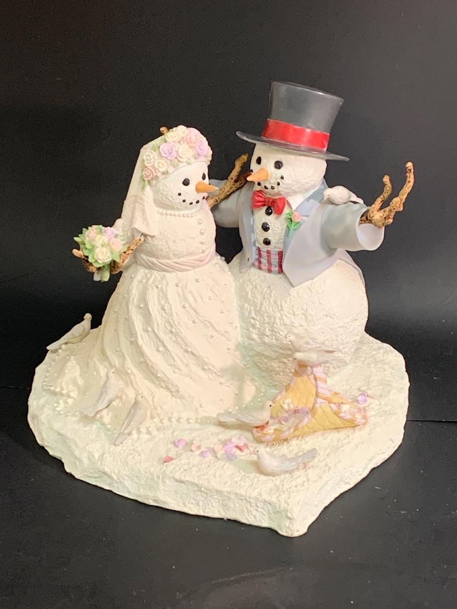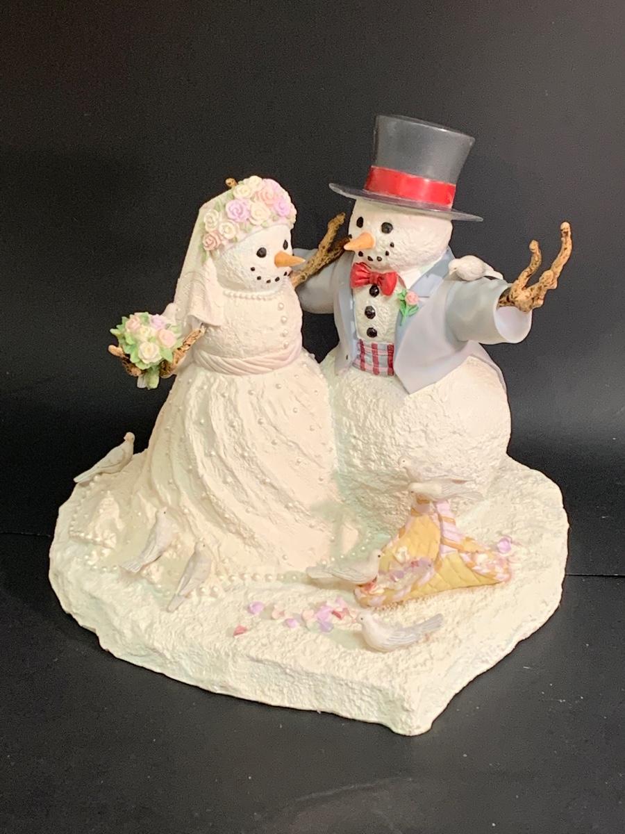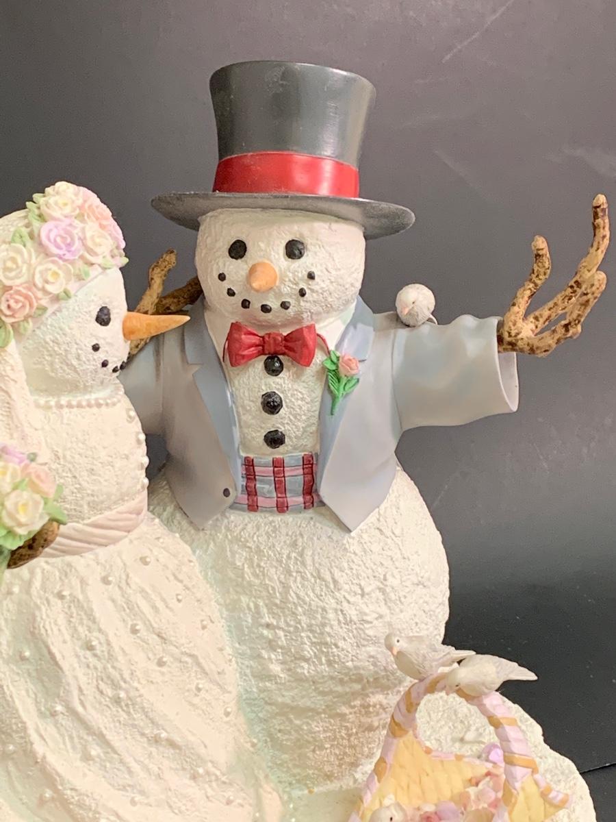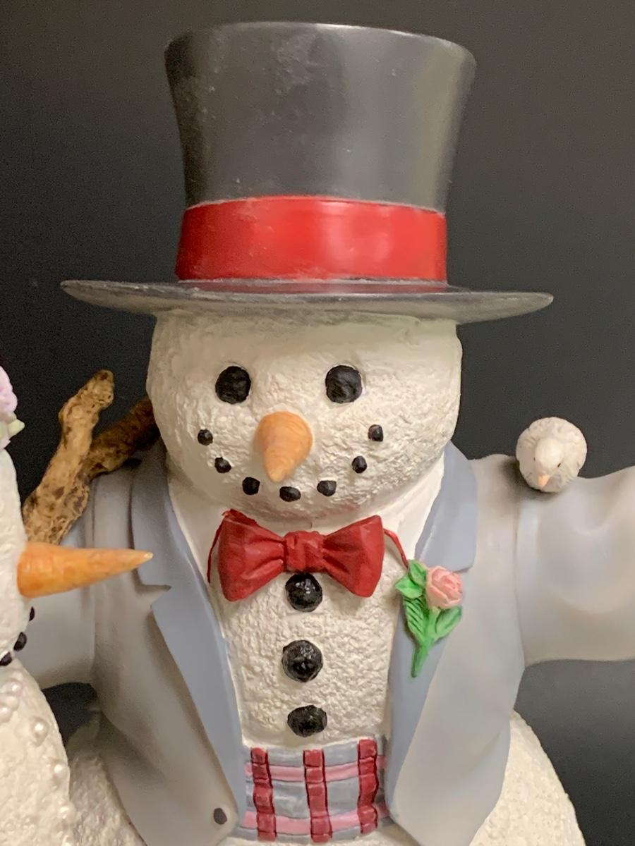 Beautiful Lenox sculptures designed by Artist Lynn Bywaters for the Lenox American By Design Snowman Collection. Made of resin, painted by hand with original Box. Please note there is a small chip on leaf as pictured.
