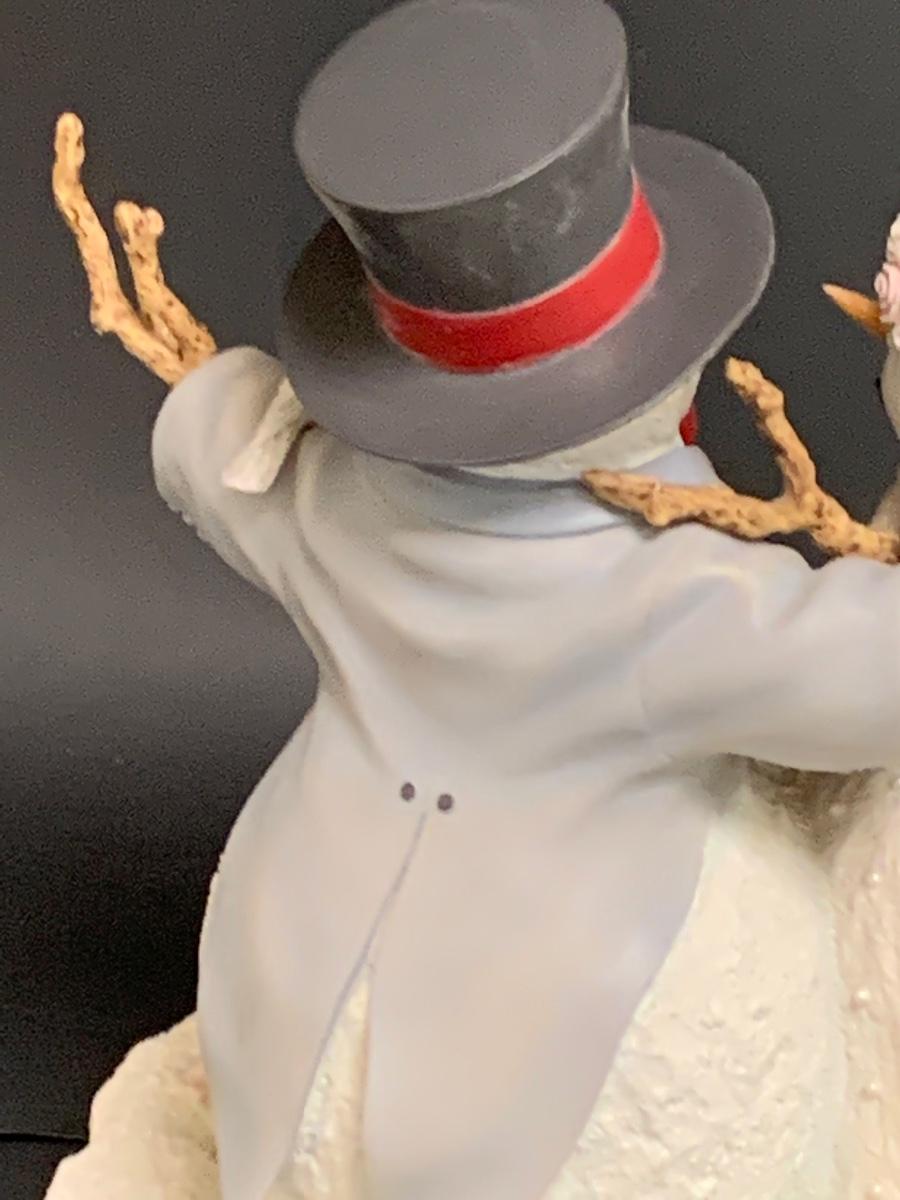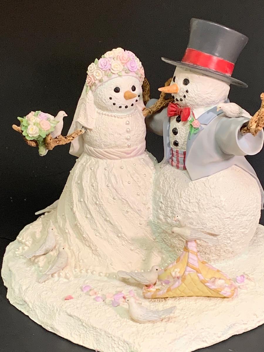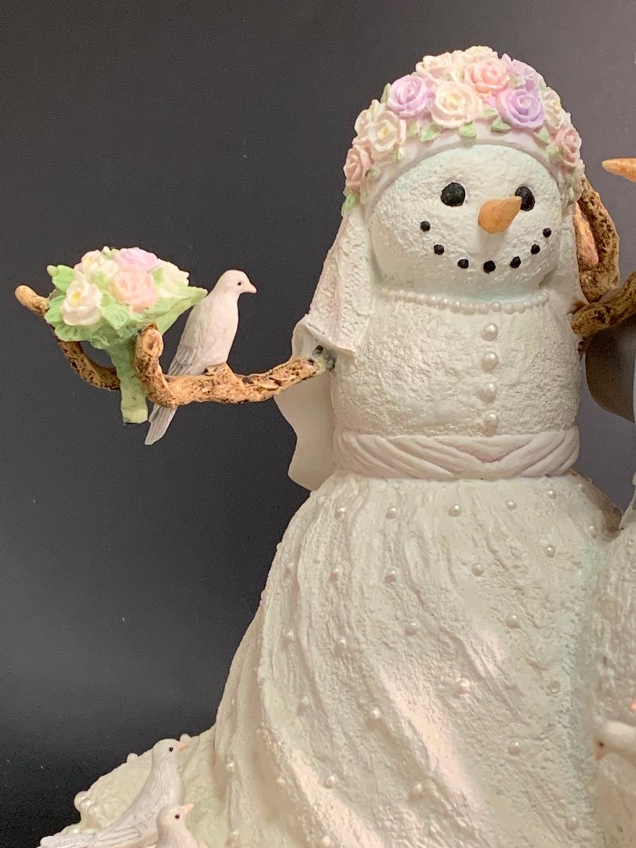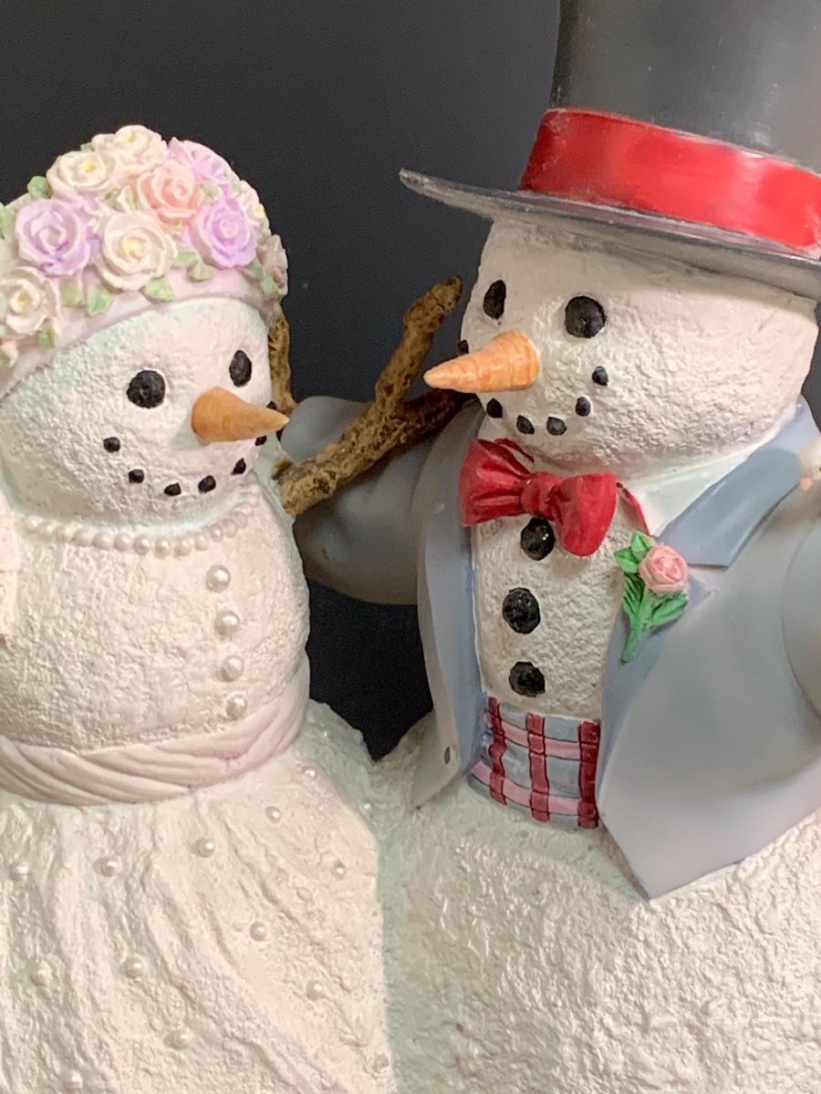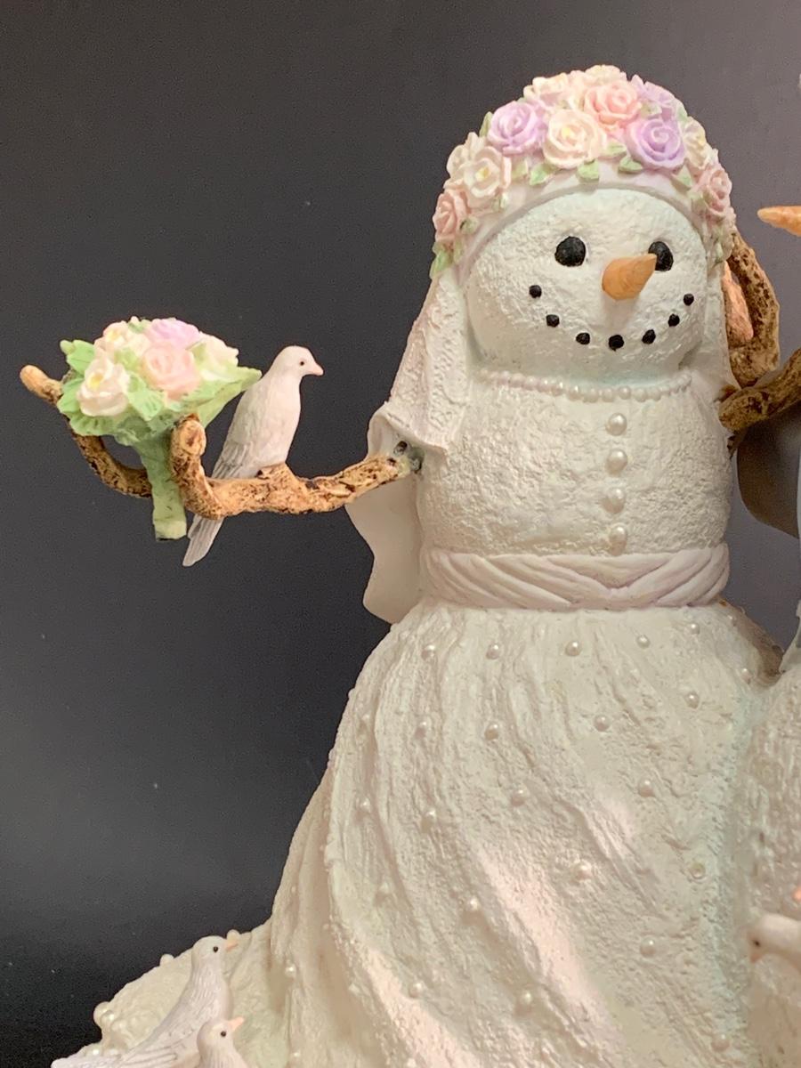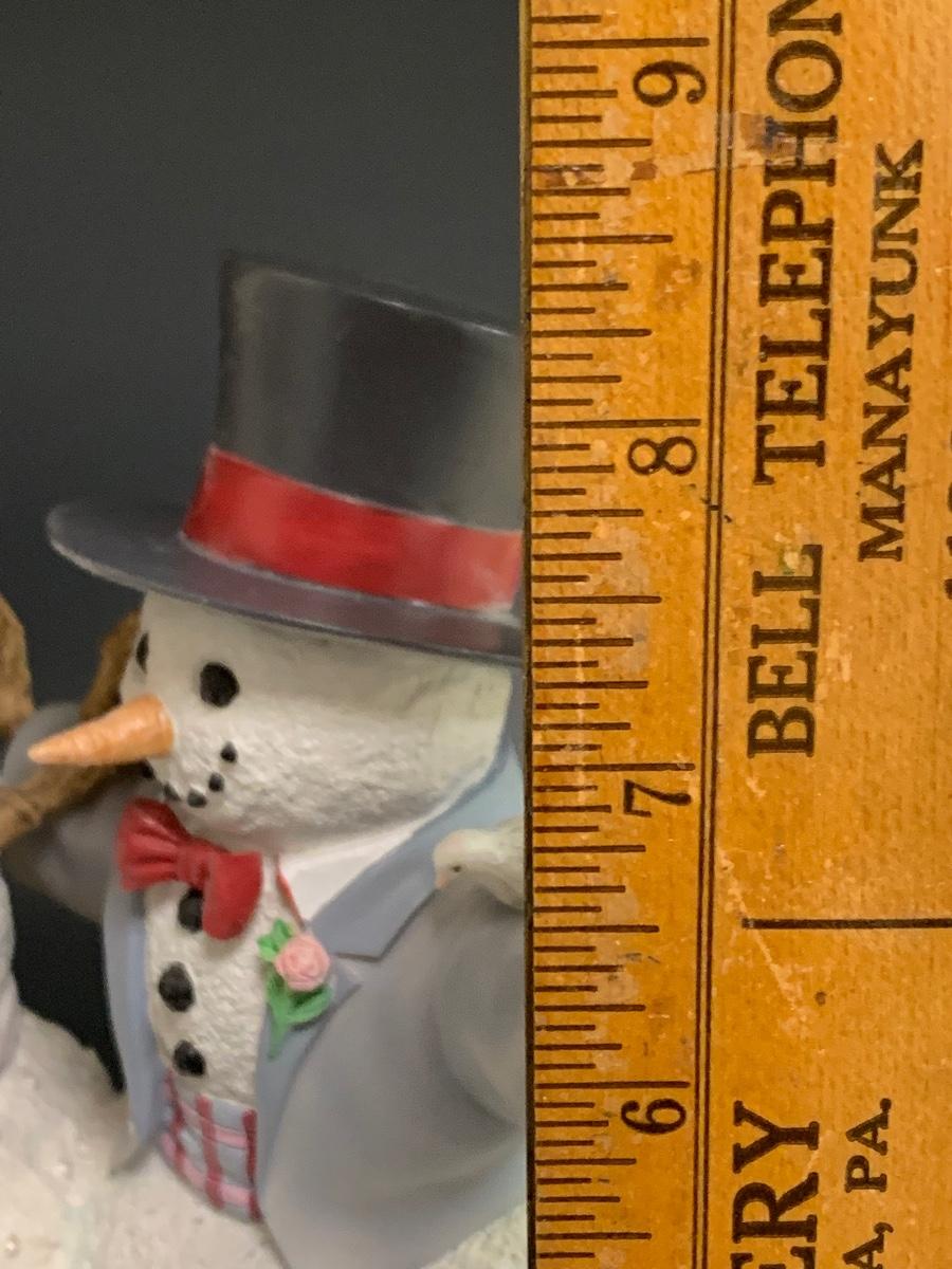 Beautiful Lenox sculptures designed by Artist Lynn Bywaters for the Lenox American By Design Snowman Collection. Made of resin, painted by hand with original Box. Please note there is a small chip on leaf as pictured.