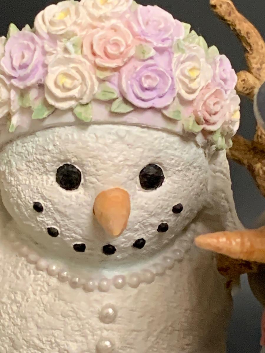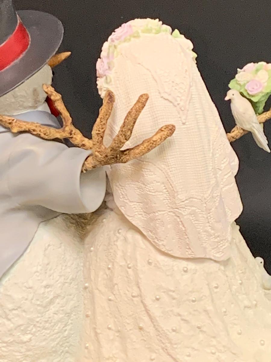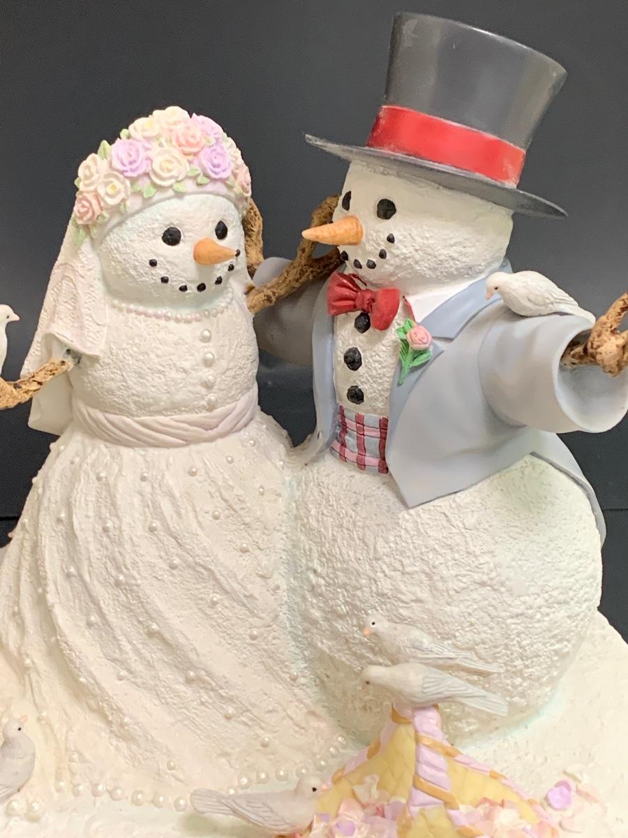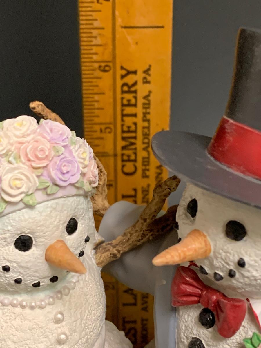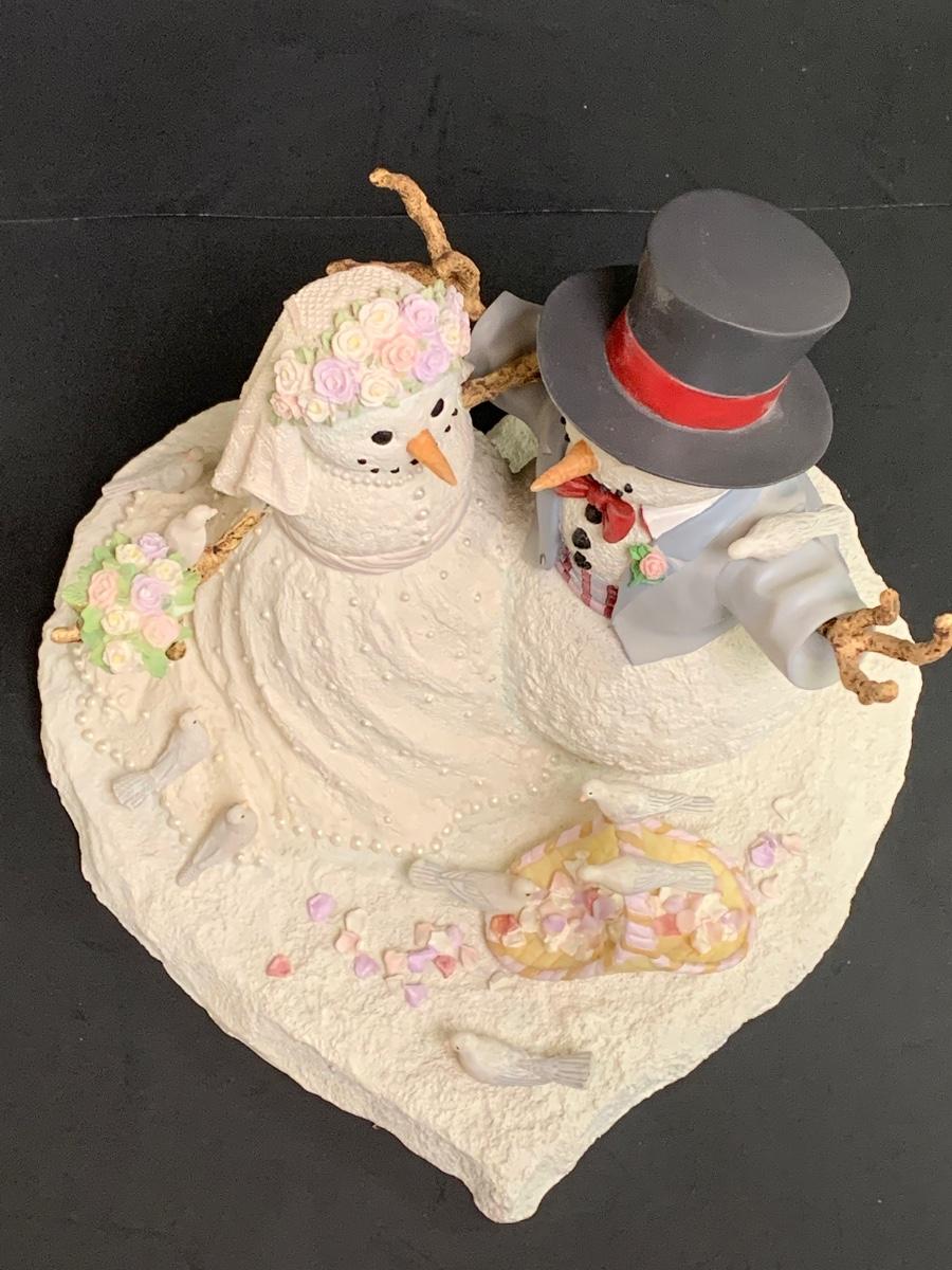 Beautiful Lenox sculptures designed by Artist Lynn Bywaters for the Lenox American By Design Snowman Collection. Made of resin, painted by hand with original Box. Please note there is a small chip on leaf as pictured.
