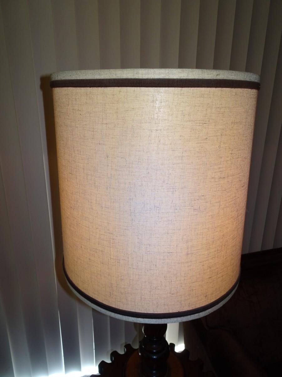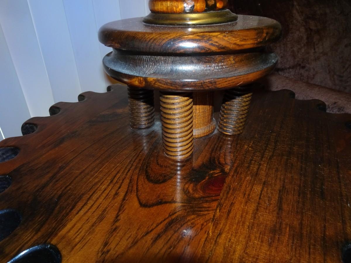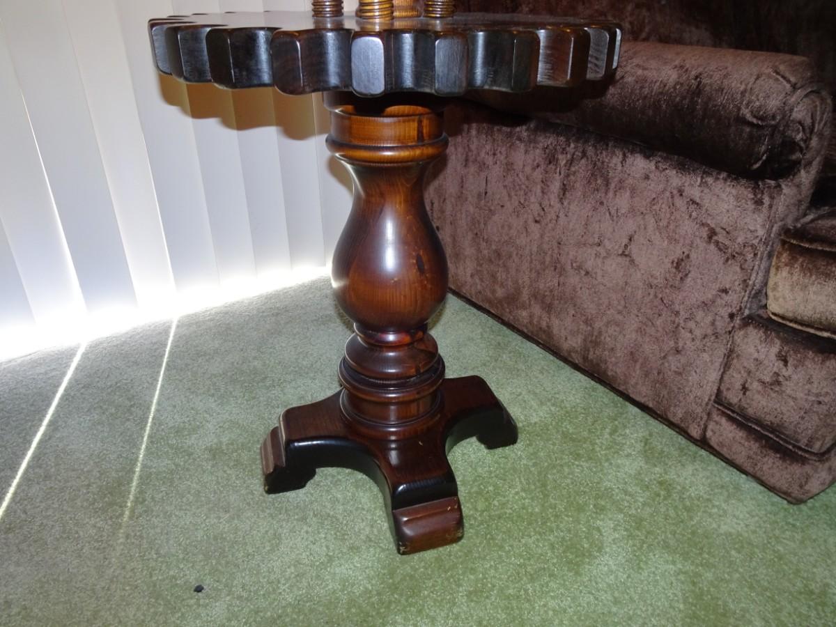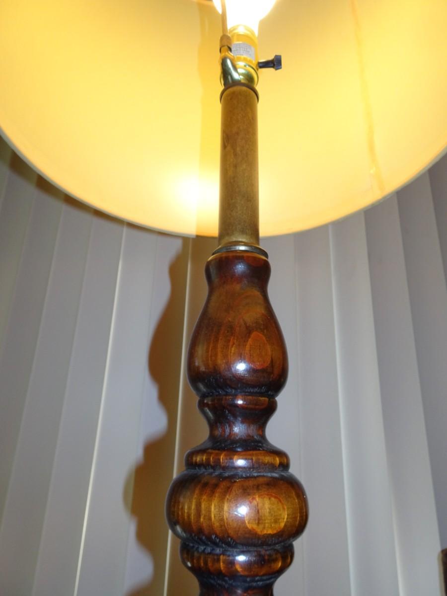 LOT 357. VINTAGE WOOD FLOOR LAMP WITH TABLE
