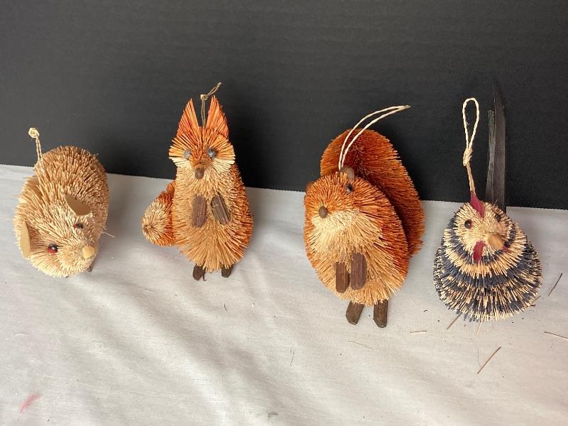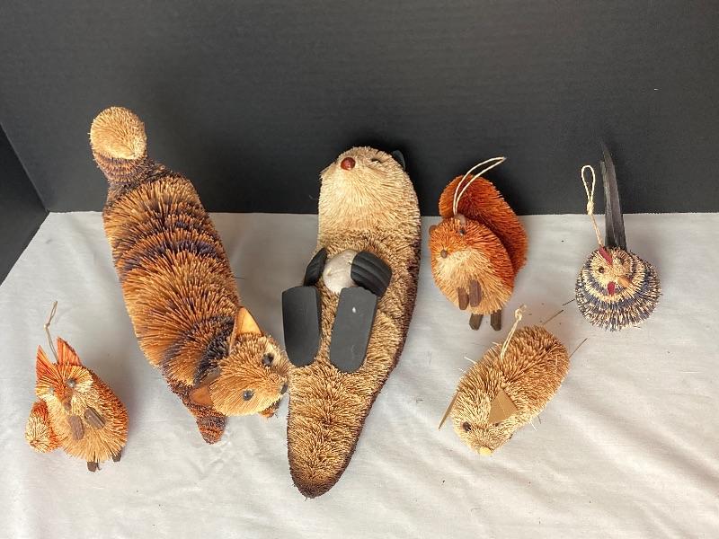 Lot of assorted bottlebrush animals. Otter, Cat, Pig, Rooster, Fox and Squirrel