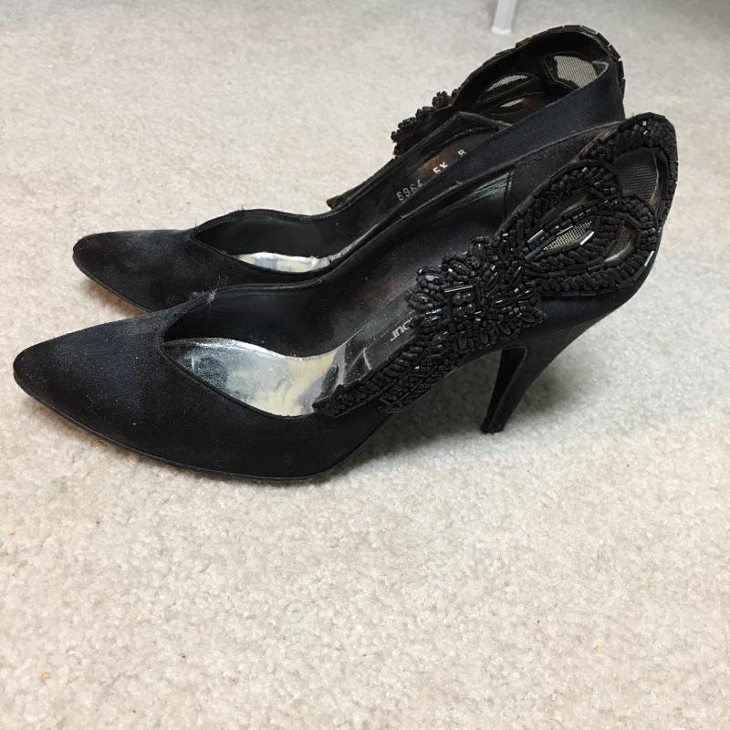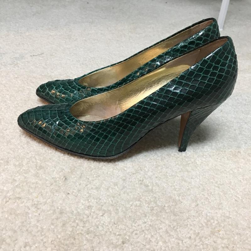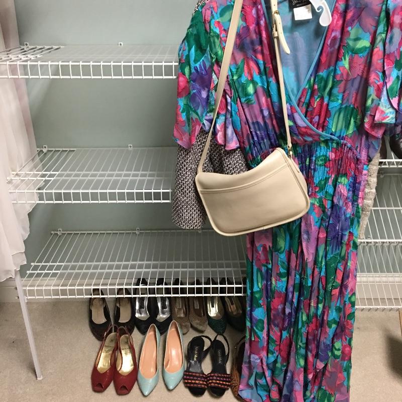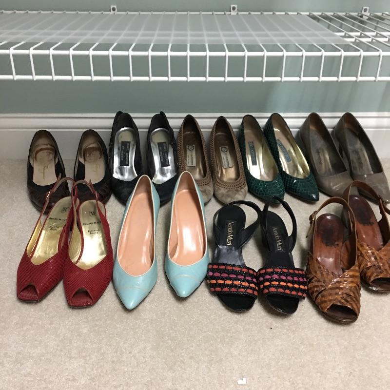 You know what they say "a woman can never have too many shoes or purses" and there are some great name brands in this collection of ladies clothing and shoes. Included here are a Coach Purse, Ferragamo, Bruno Maggie, Yves Saint Laurent shoes, a Fendi silk scarf, a Neiman Marcus jacket, Diane Freis silk dress and much more, see images for details. Scarf measure 51” x 51”. Most shoes are sized between 5.5 and 6.5, again see images.