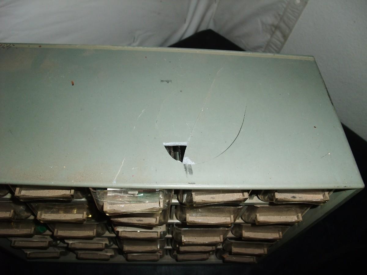 ONE HARDWARE BIN HAS CRACK ON THE TOP