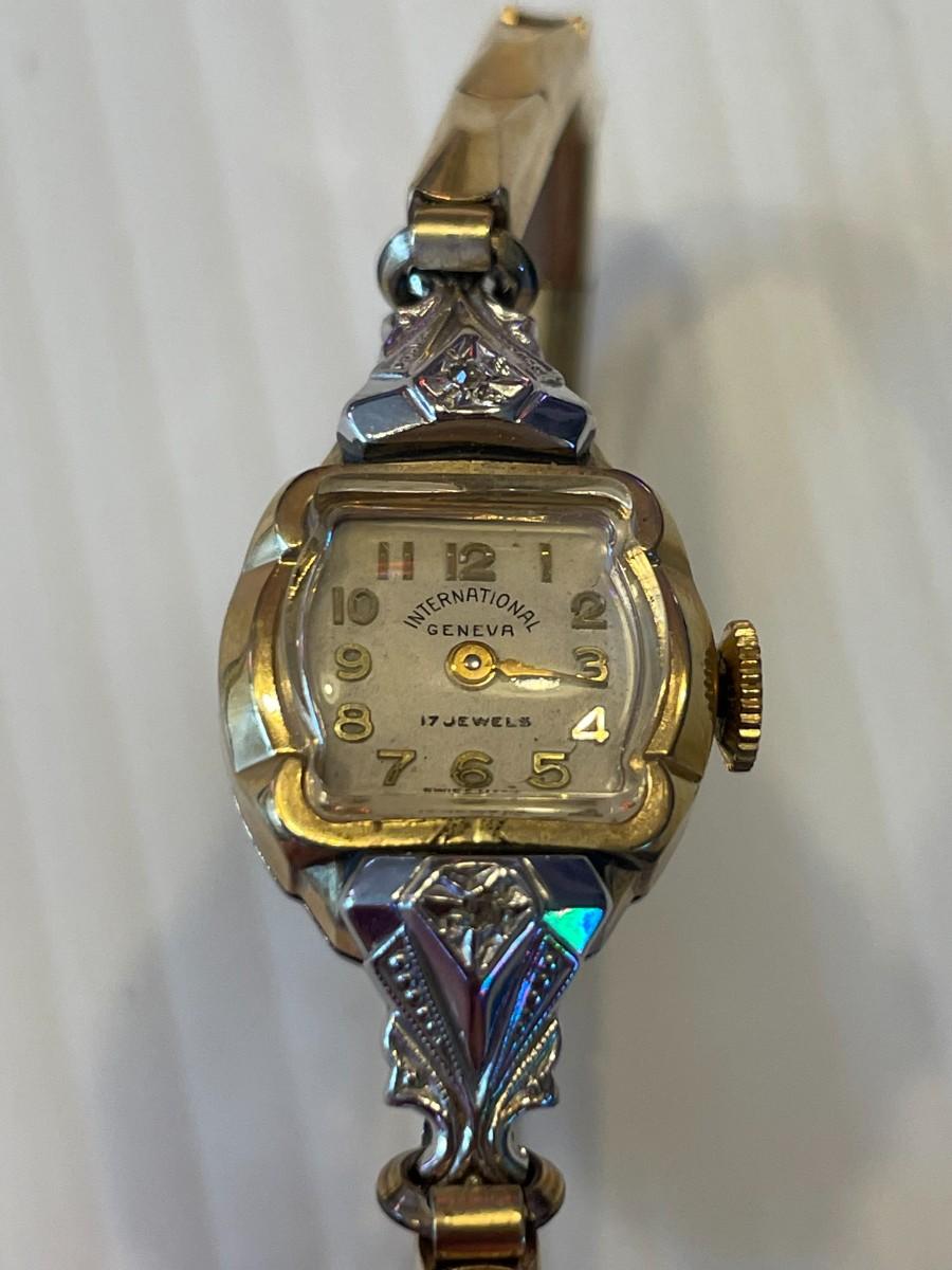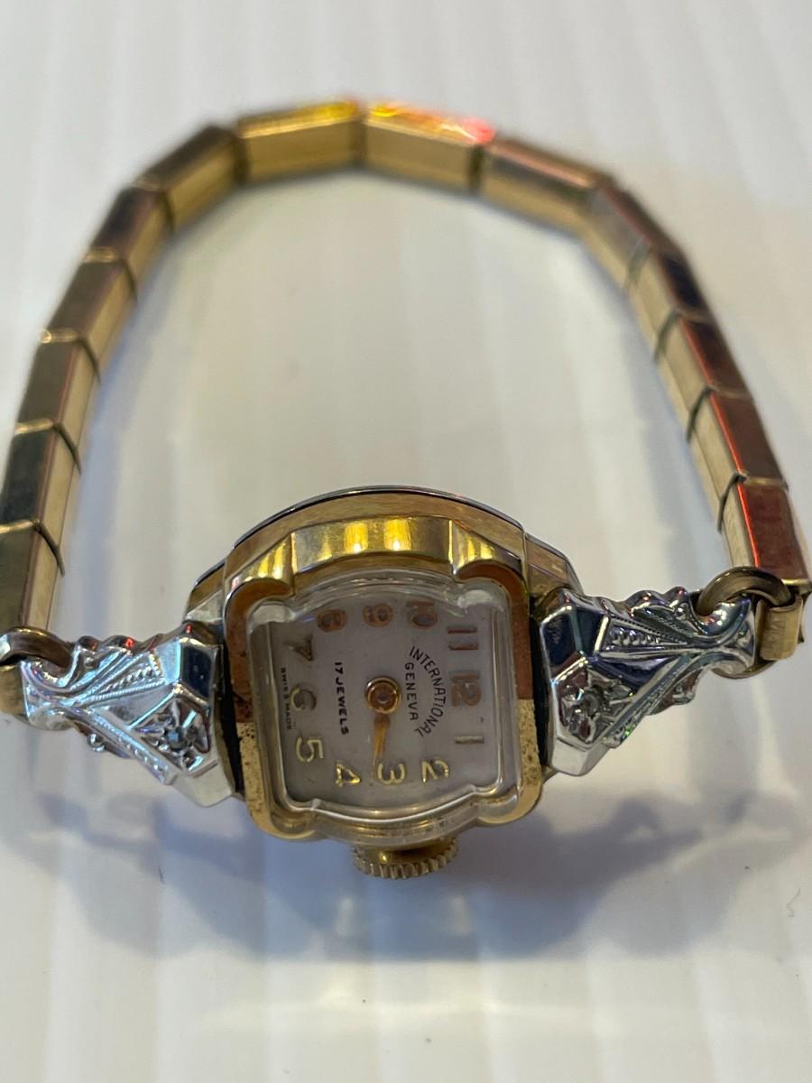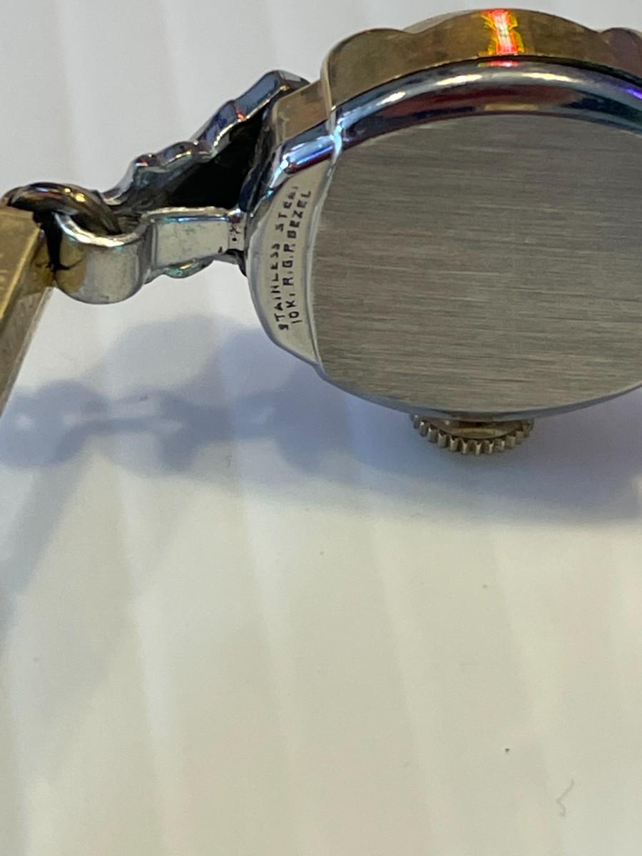 10K rolled gold bezel 17 ruby's and 2 diamond ruby's watch.