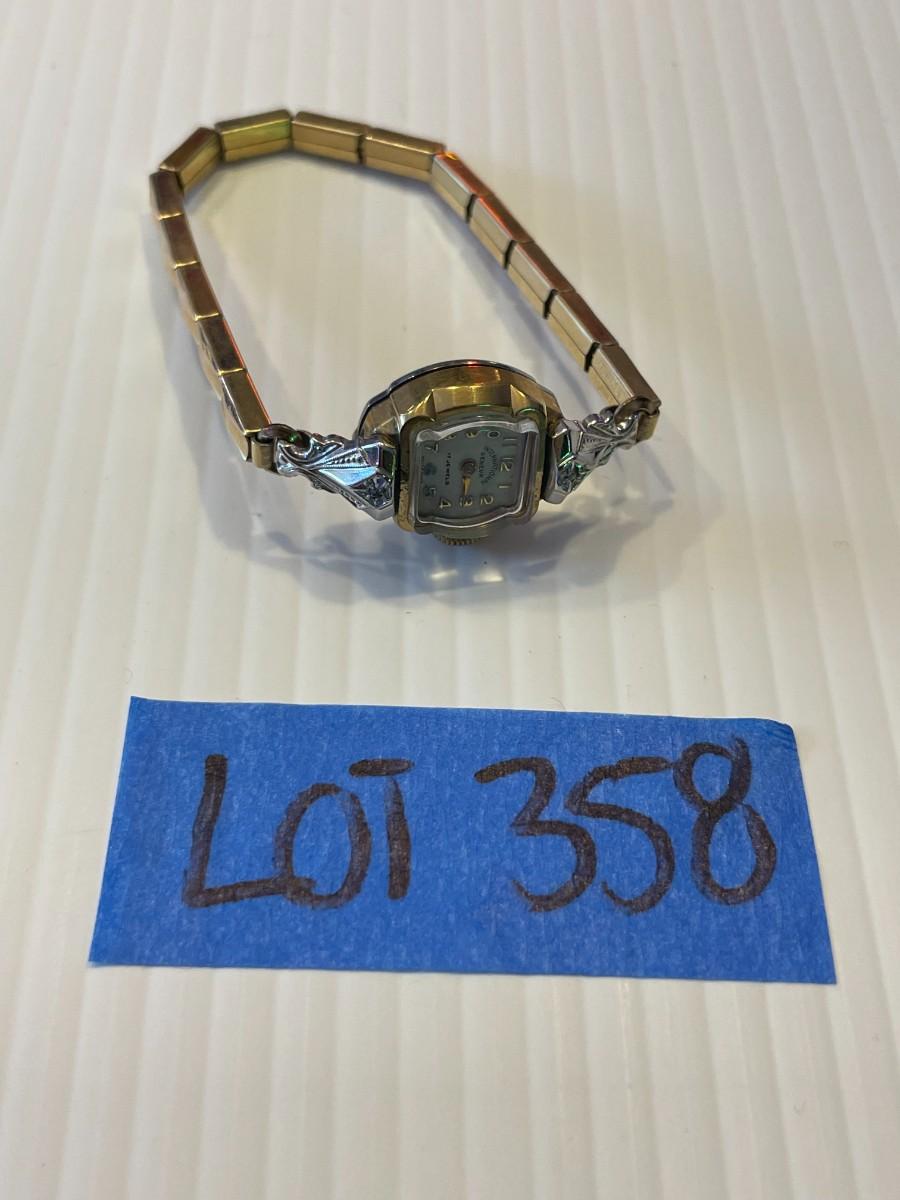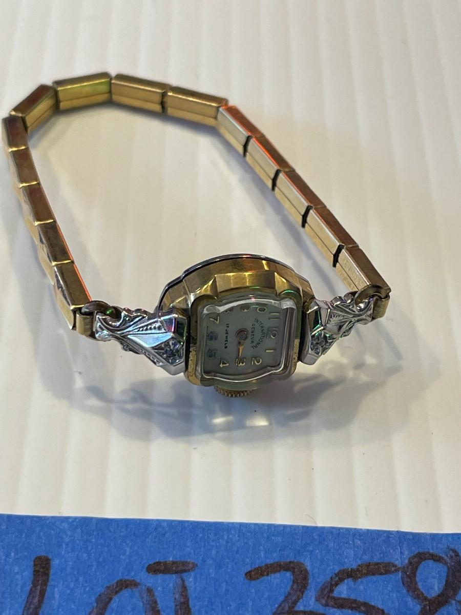 lot 358- 10K rolled gold bezel 17 ruby's and 2 diamond ruby's watch