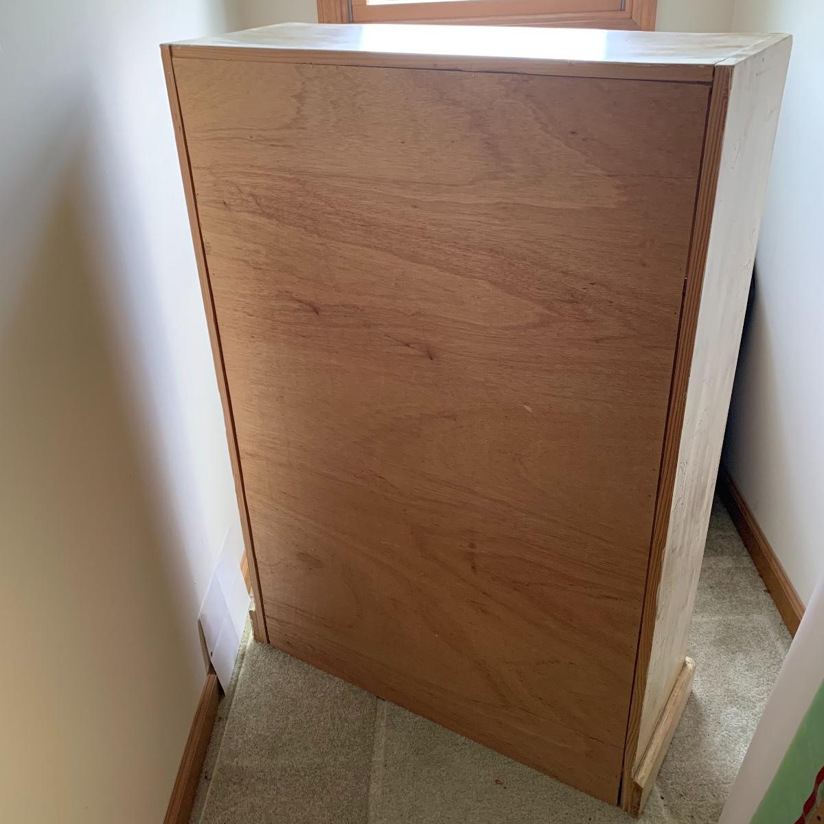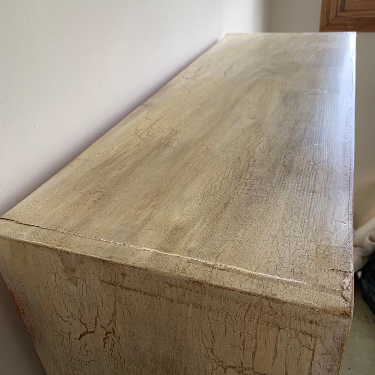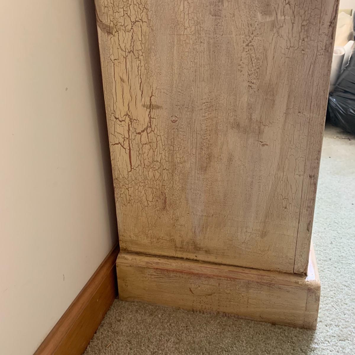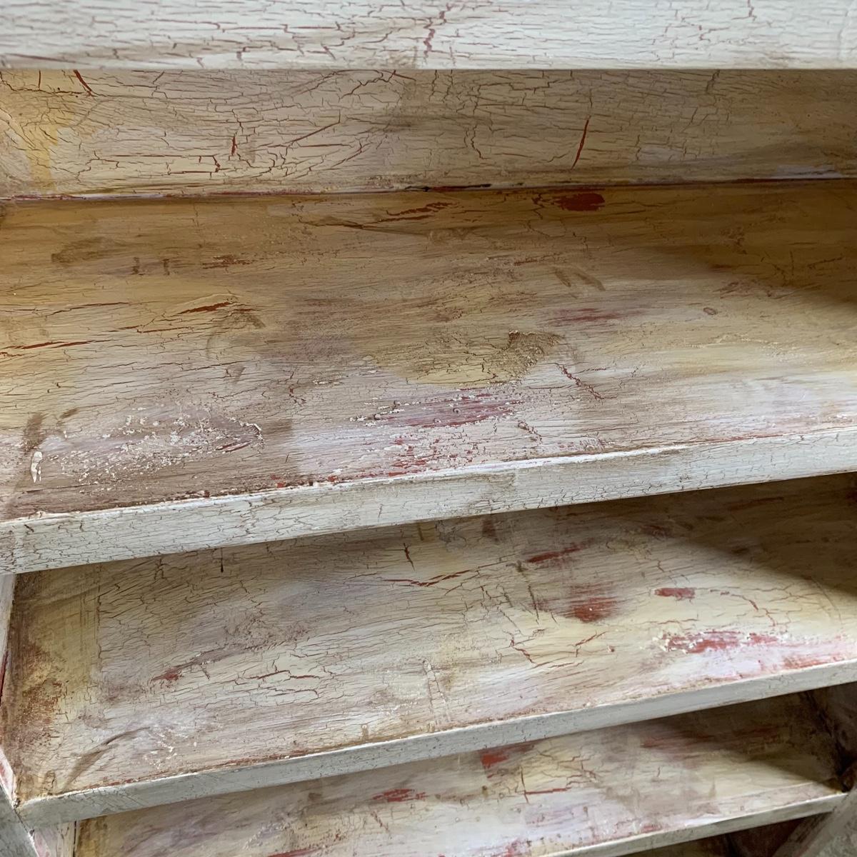 This wooden bookshelf has a fun crackled/distressed white paint job. It has four stationary shelves. It is sturdy and appears to be in good condition. The unit measures 34” x 13” x 48”. Local pickup only. Please note that the winning bidder will need to move the unit from the second floor of the house. It is not very heavy, but would be easiest to have two people to move it.