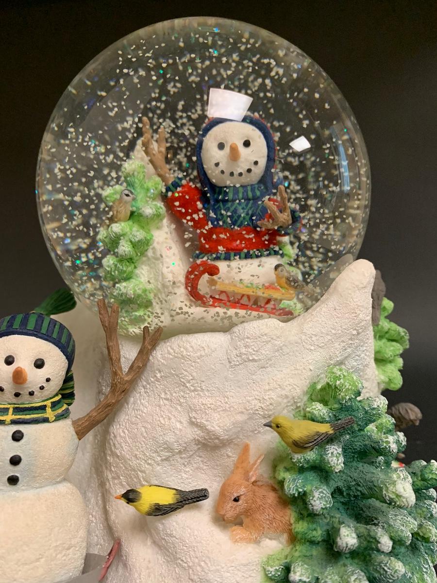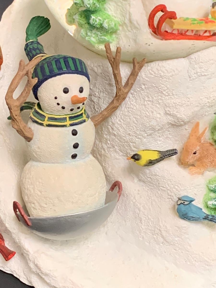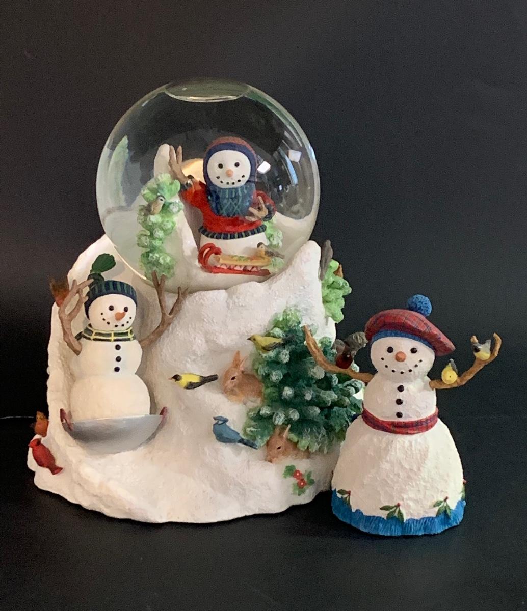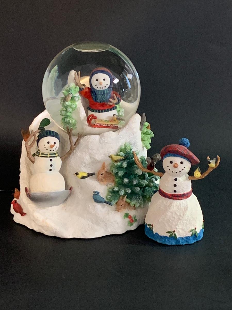 Beautiful Lenox sculptures designed by Artist Lynn Bywaters for the Lenox American By Design Snowman Collection. Made of resin, painted by hand. Box for sledding party only - Pretty in Plaid does not have a box.