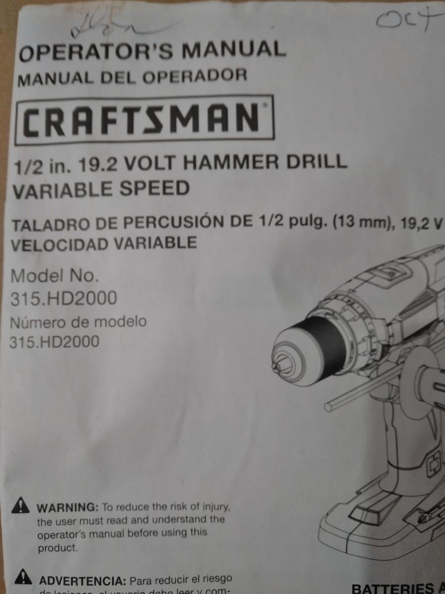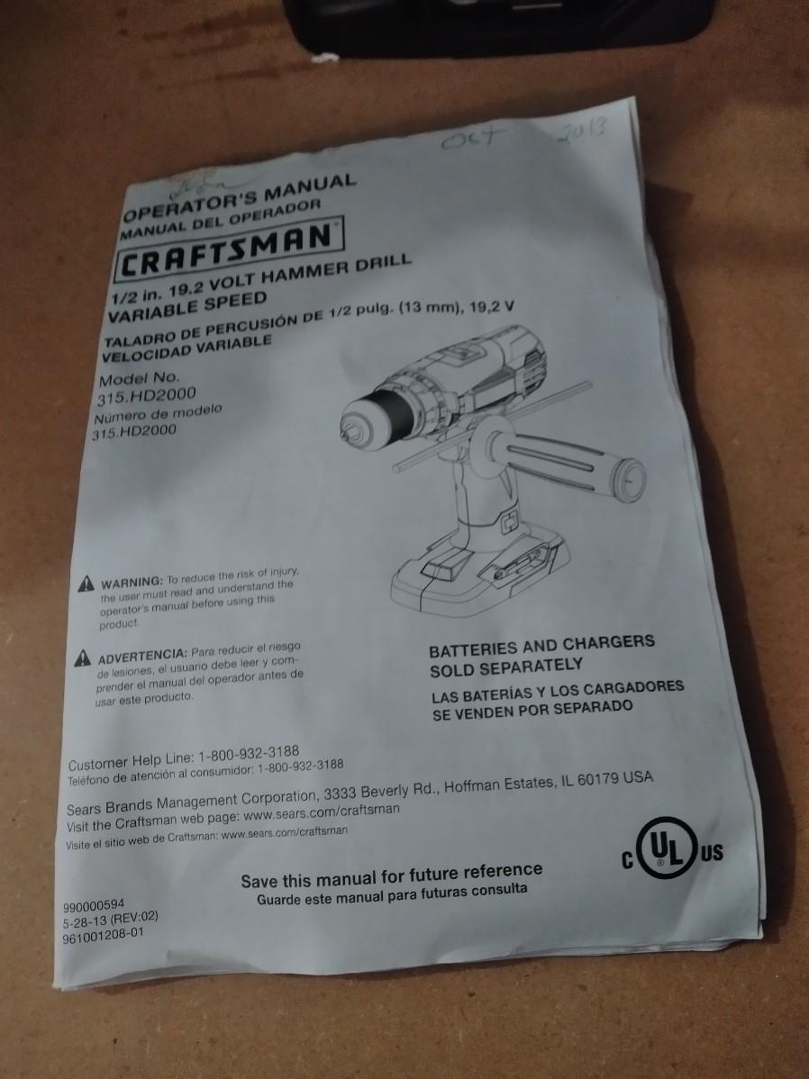 LOT 358 CRAFTSMAN DRILL WITH TOOLBAG