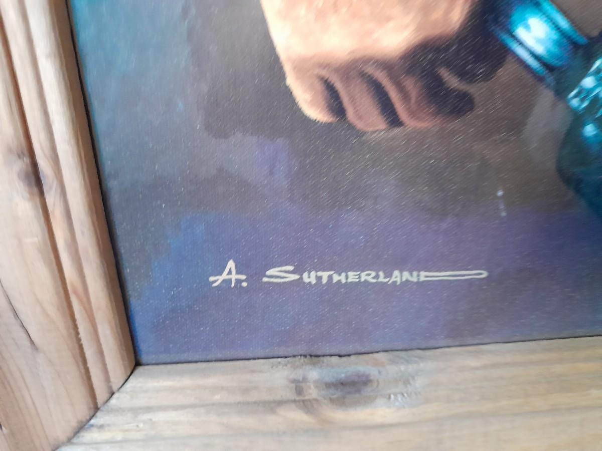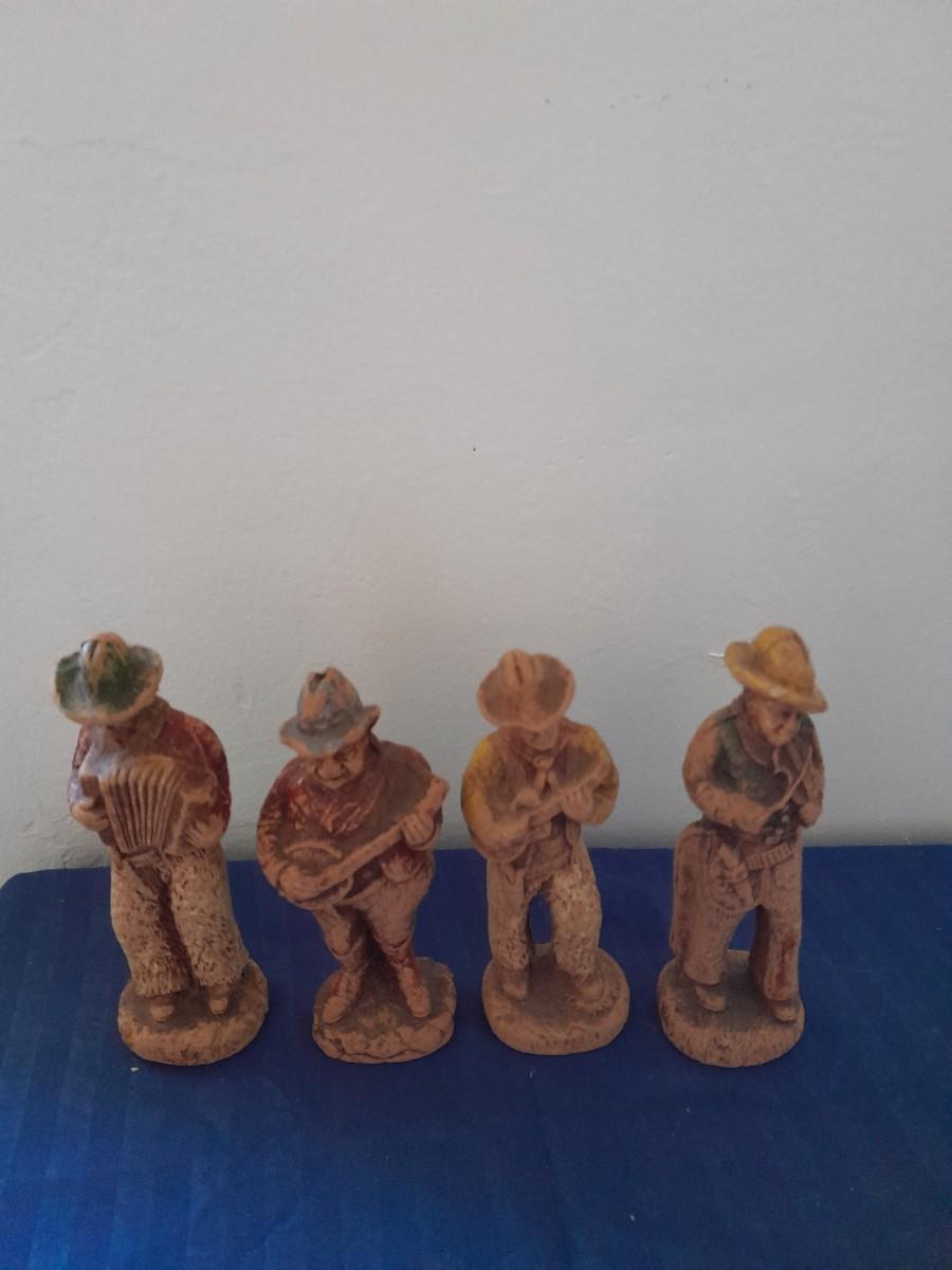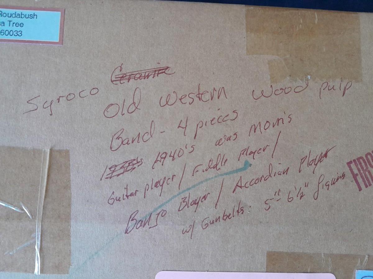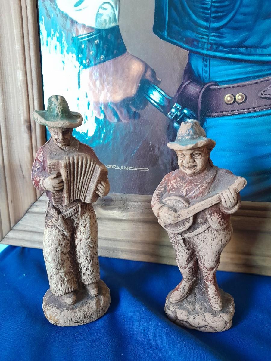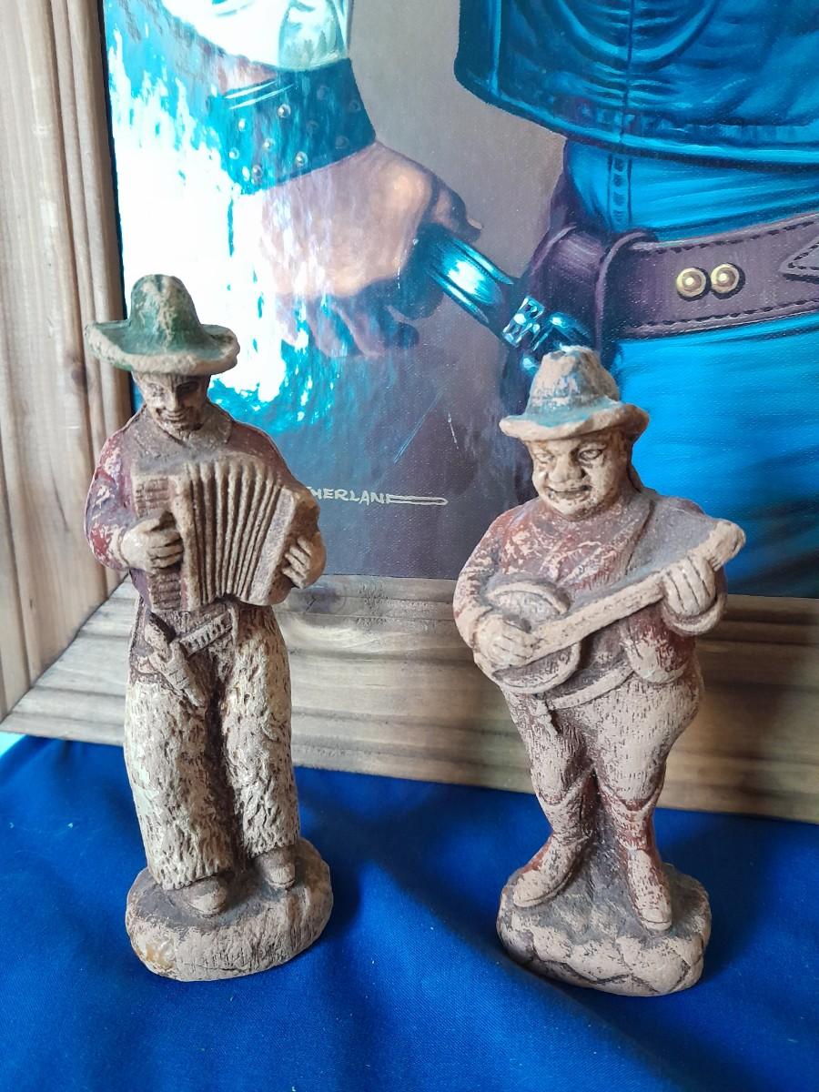 JOHN WAYNE PICTURE 20" X 24" AND FOUR OLD WESTERN BAND WOOD CARVED FIGURES 6" TALL
