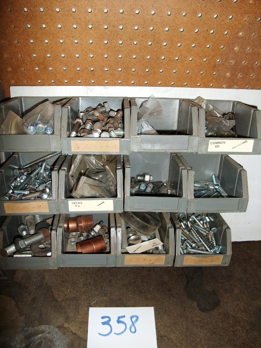 LOT 358 TWO HARDWARE BINS WITH MISC. HARDWARE