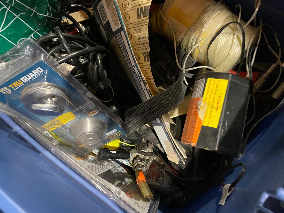 Lot 359 misc hardware -- air compressor hose, door knobs, miscellaneous