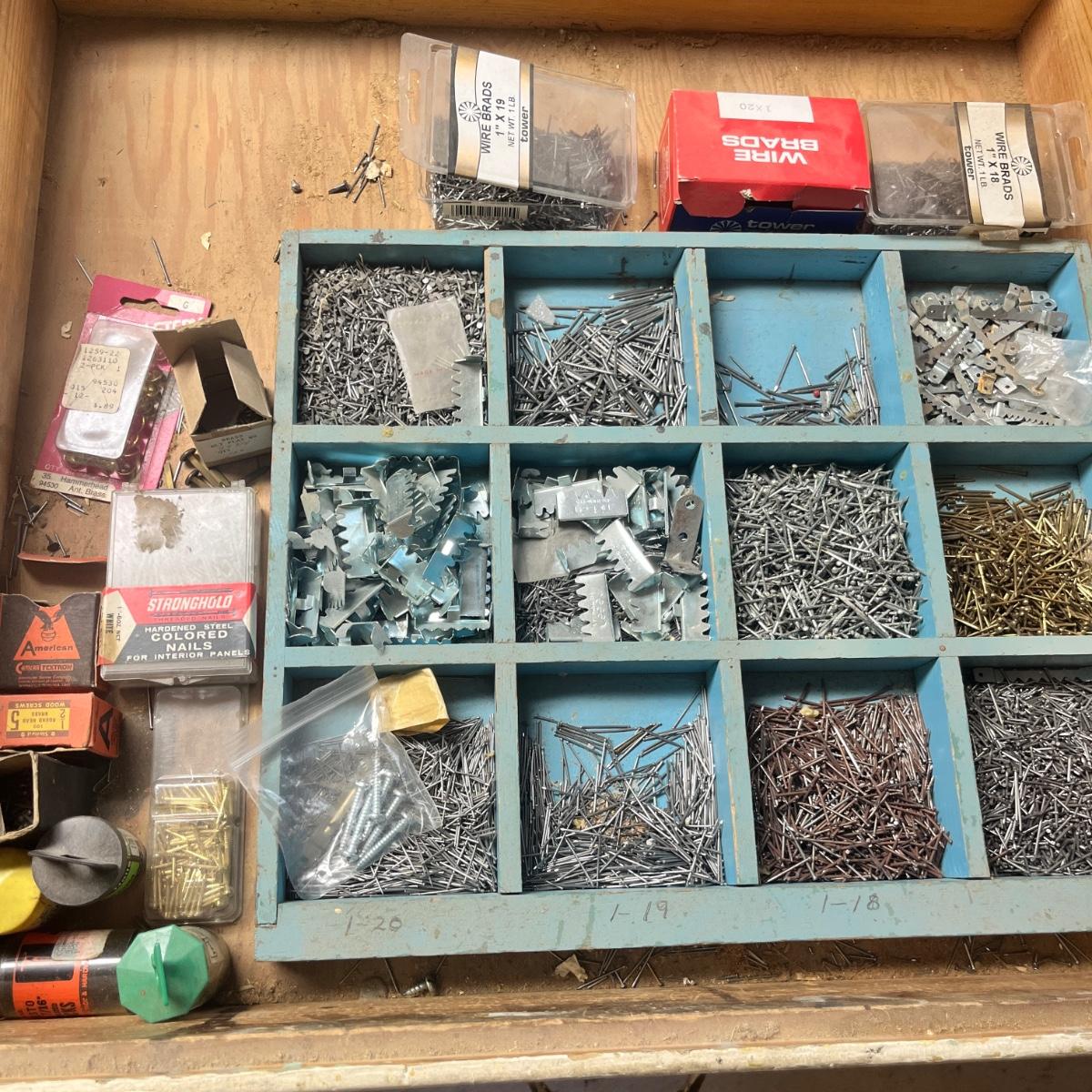 Lot 359 Drawer of nails and framing hardware