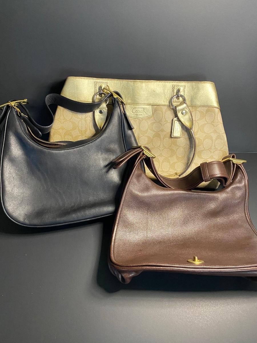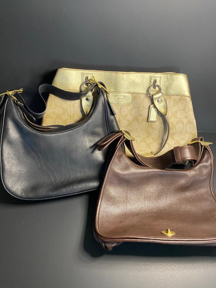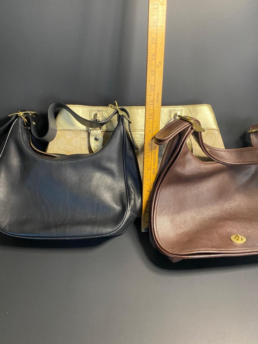 Three Authentic Coach bags. Please see all pictures as they are the best representation of the items. The pictures show condition, measurements if taken, and what is included in the lot. Due to the large amount that we photograph and the time frame, we are not always able to take measurements. All items unless noted, are pre-owned and have been used. If you purchased furniture, you must bring help. We do not allow one person to carry large furniture out on their own. Bring help, tools and a truck for the safety of our client’s homes, and your personal safety. Company policy. Thank you.