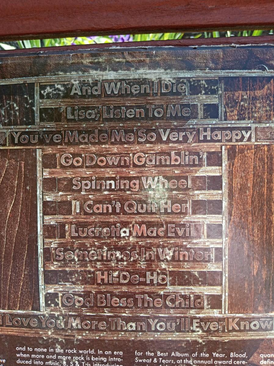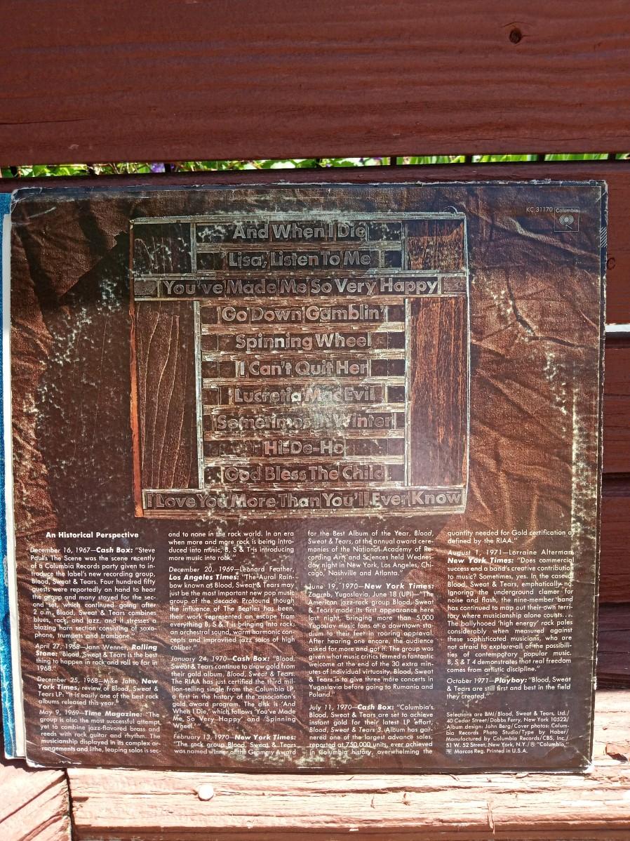 BLOOD, SWEAT AND TEARS GREATEST HITS HAS WEAR TO THE JACKET, RECORD IS GOOD