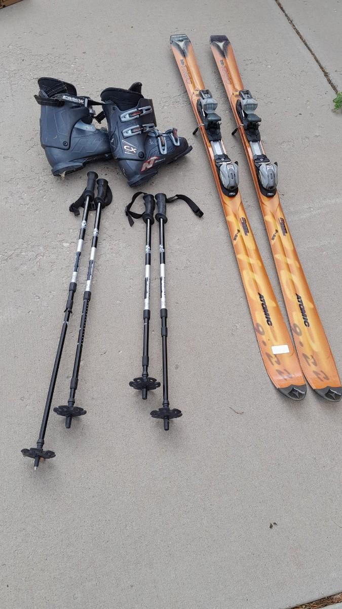 ATOMIC HYPER BETA RIDE SNOW SKI'S WITH MARKER M1000 BINDINGS AND BOOTS WITH POLES