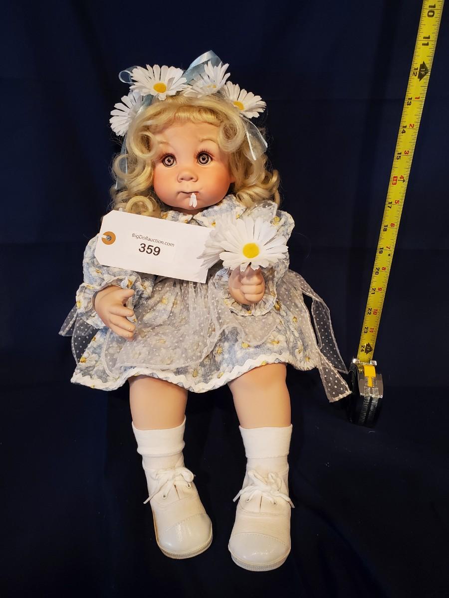 Doll Named "Daisy" By Cindy M Rolfe with Blue Daisy Hat and Dress Holding Flower