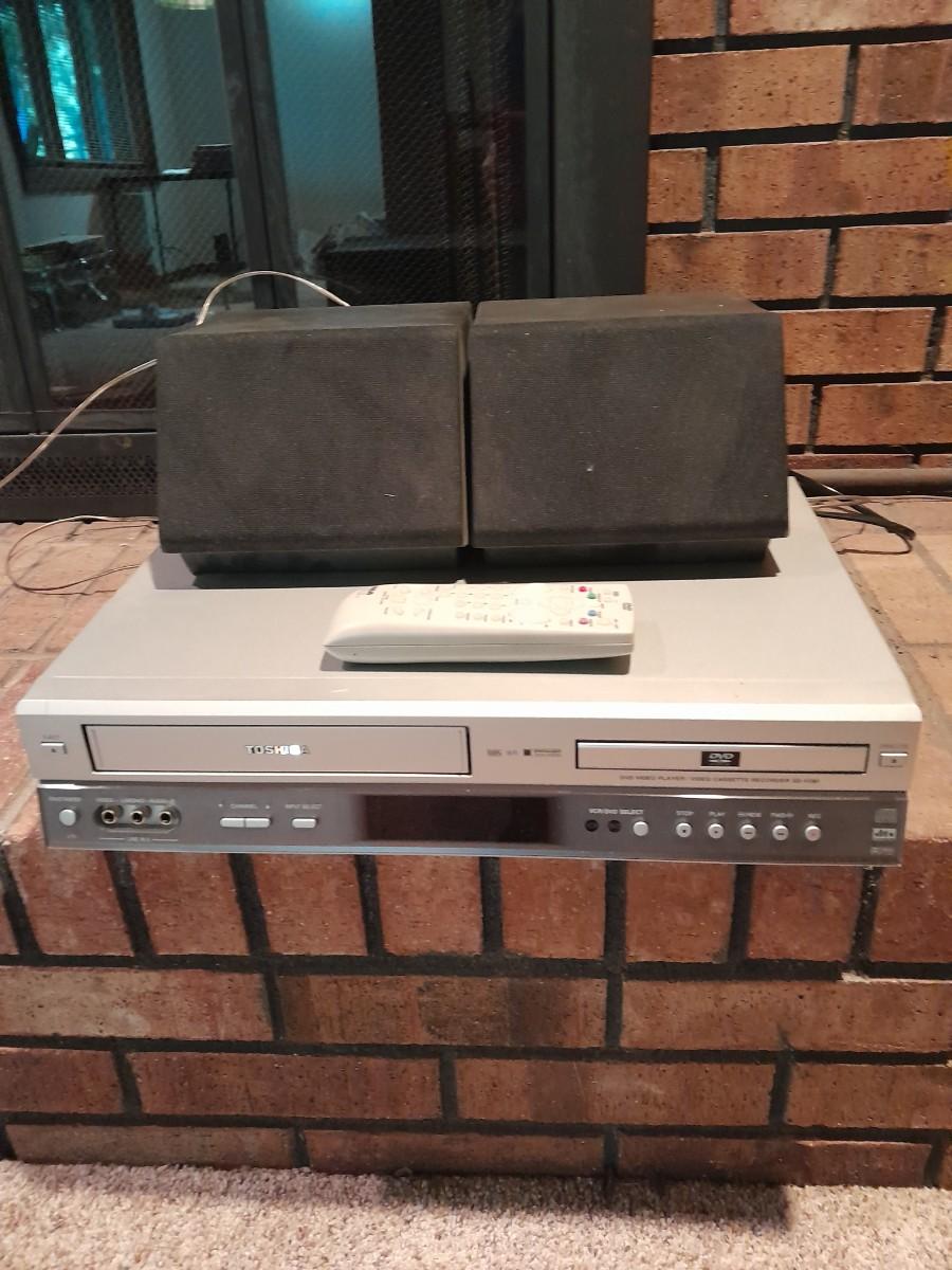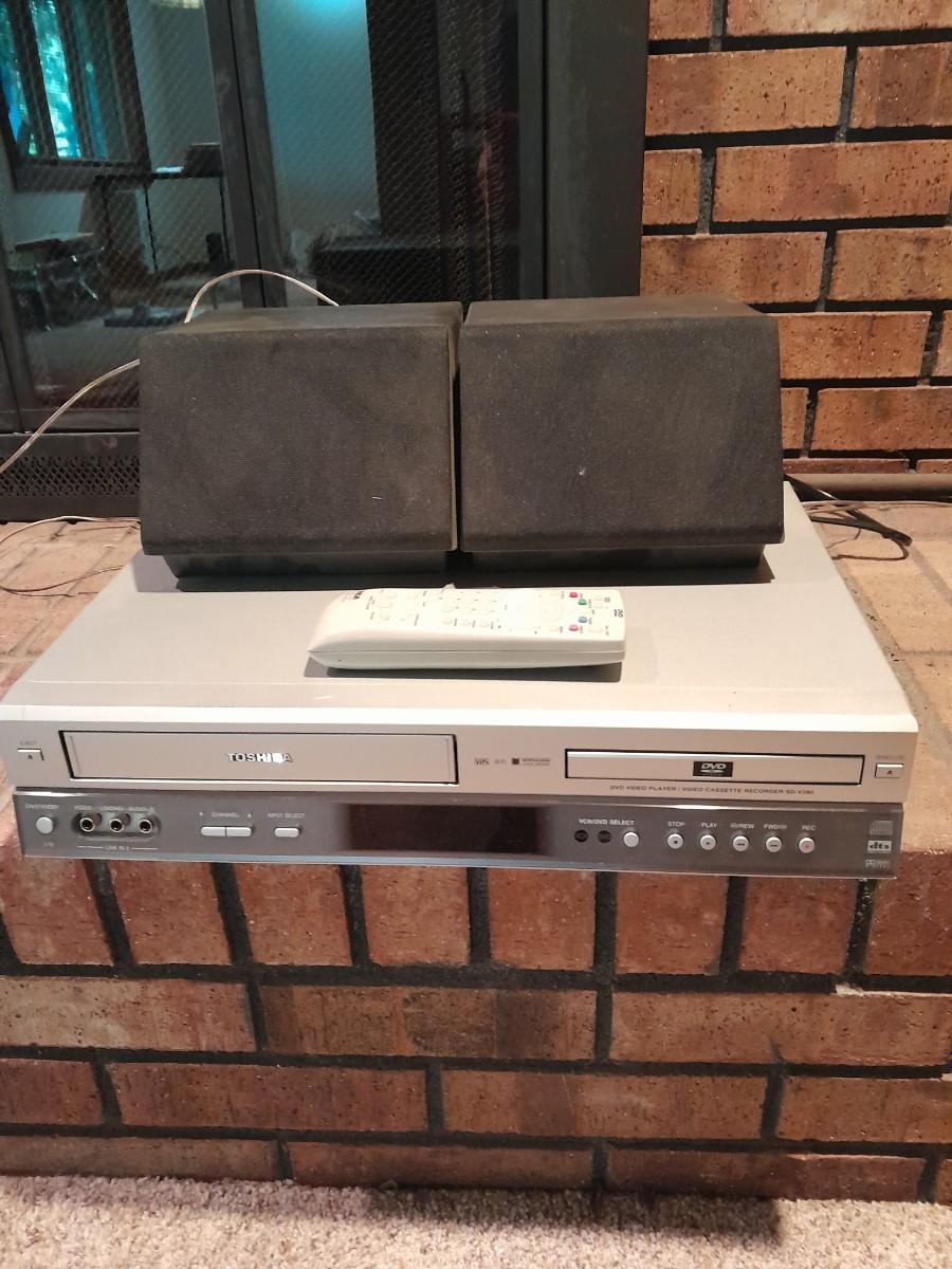 TOSHIBA VHS / DVD PLAYER WITH TWO ZENITH SPEAKERS MODEL SD-V290U (remote may not work for this device)
