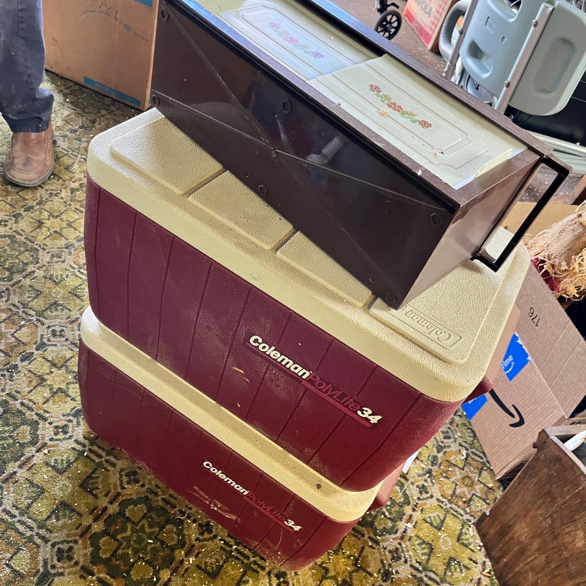 Lot 360 Coolers & Plastic storage shelf