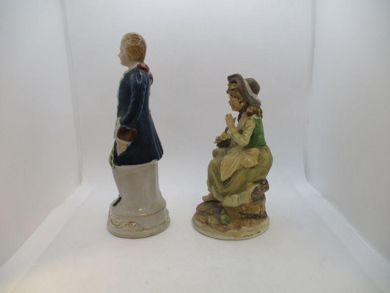 The standing man is about 7.75" tall and the lady is 6" tall. The only issue that I found was the marker writing on the base which may be removable.