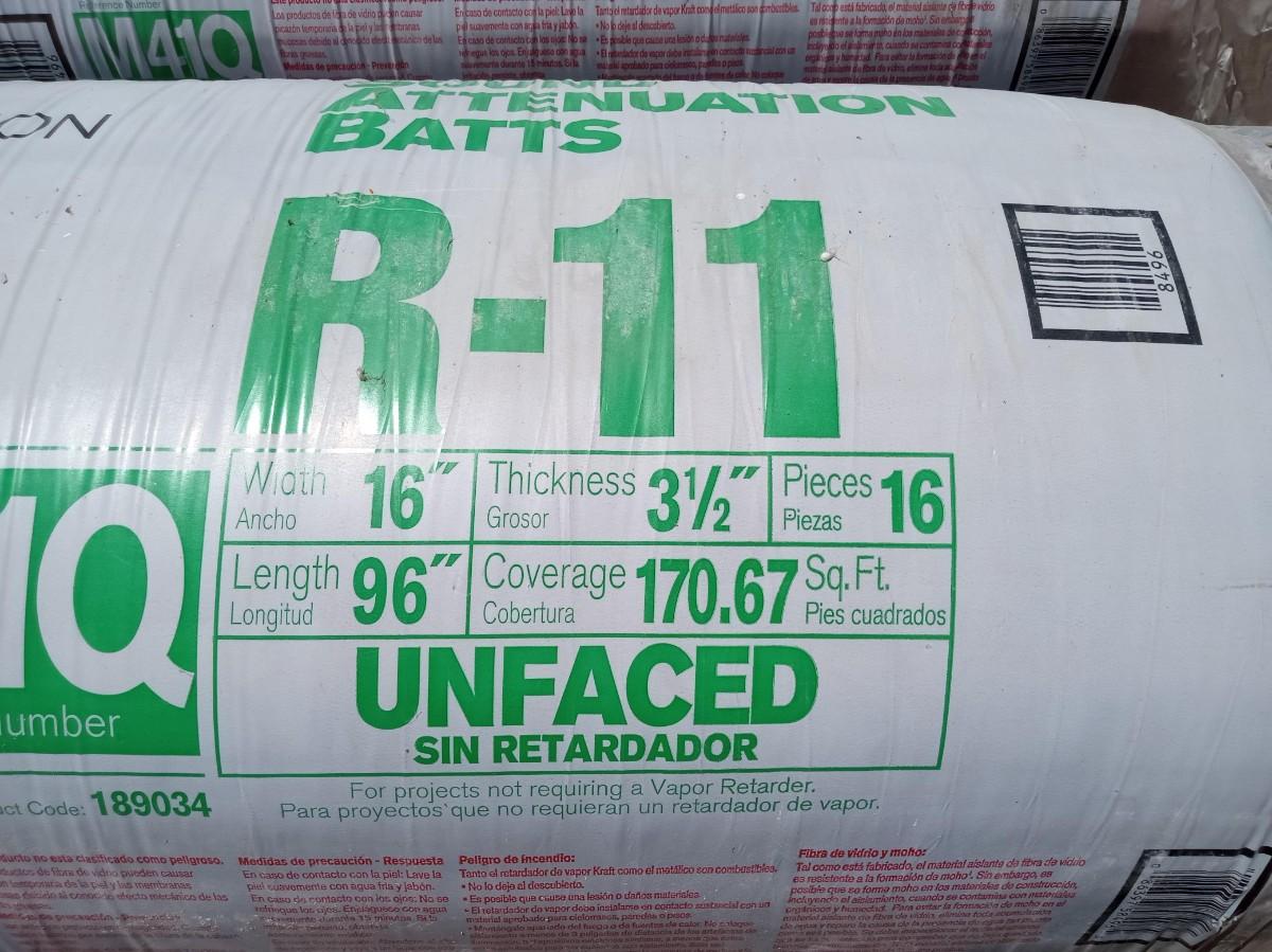 LOT 36 TWO ROLLS OF R-11 UNFACED 16" X 96" INSULATION (SDS)